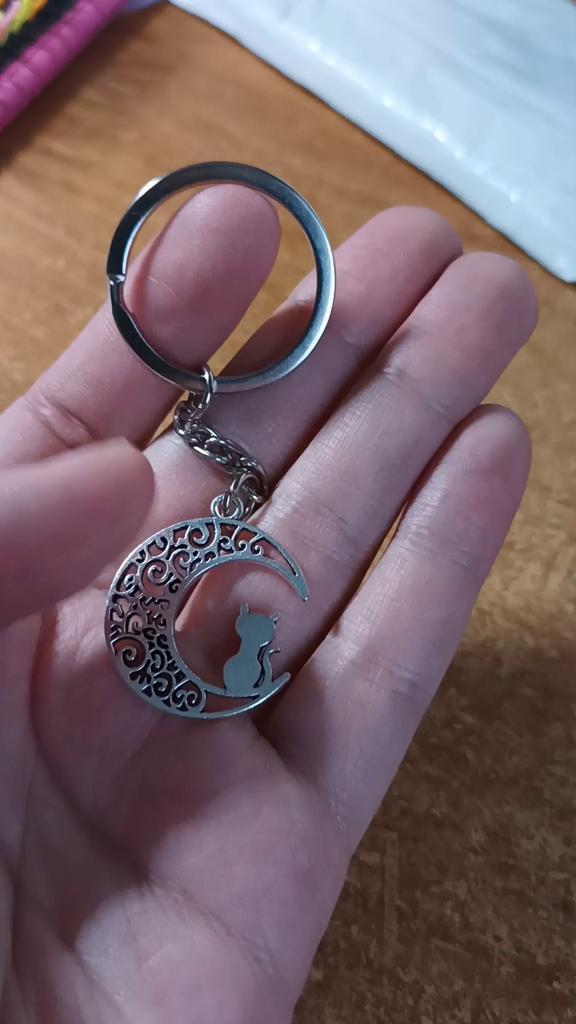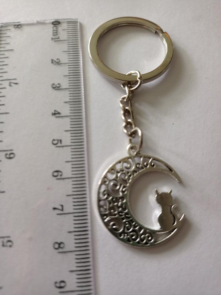 Fashion Keychain 30x25mm Moon Cat Pendants DIY Men Jewelry Car Key Chain Ring Holder Souvenir For Gift