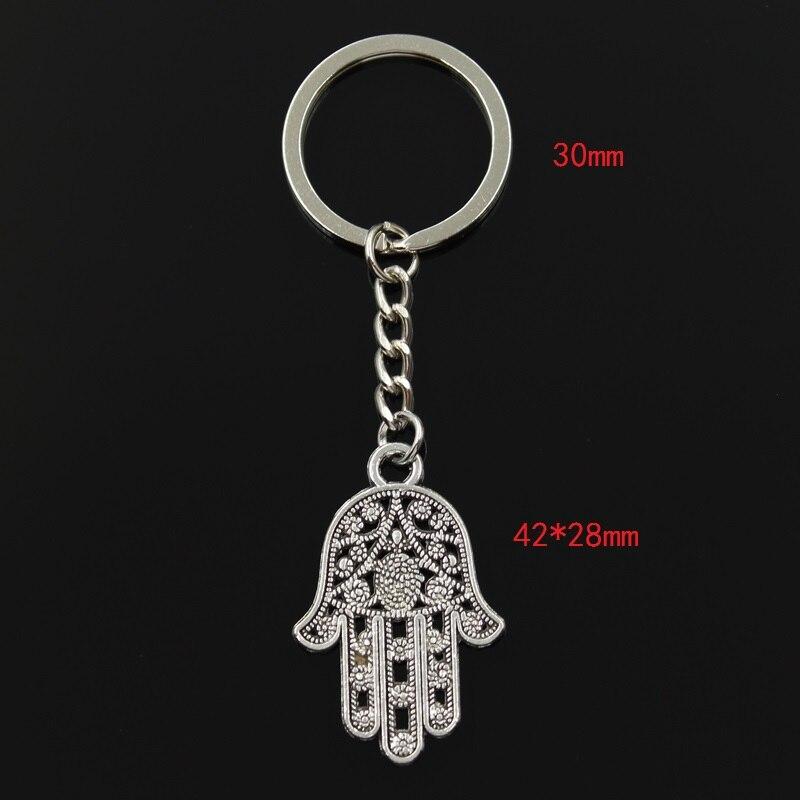 Fashion 30mm Key Ring Metal Key Chain Keychain Jewelry Antique Plated Hamsa Palm Hand Protection 42x28mm Pendant