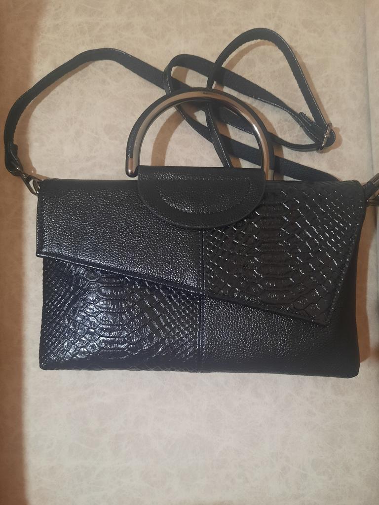 The quality is impeccable, wide clutch bag, strap available. Closes with two magnetic buttons, genuine leather. Everything in this bag is thought out to the smallest detail. The lugs for the long strap are retracted inside when carried in your hand and are not visible. The handle at the bottom is trimmed with metal and the shape holds and is beautiful. If you don't want to carry it by the handle, fold it back. Even the bottom is reinforced. I haven’t felt such a thrill from shopping with Juma for a long time. I recommend it for purchase.