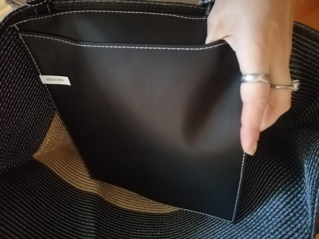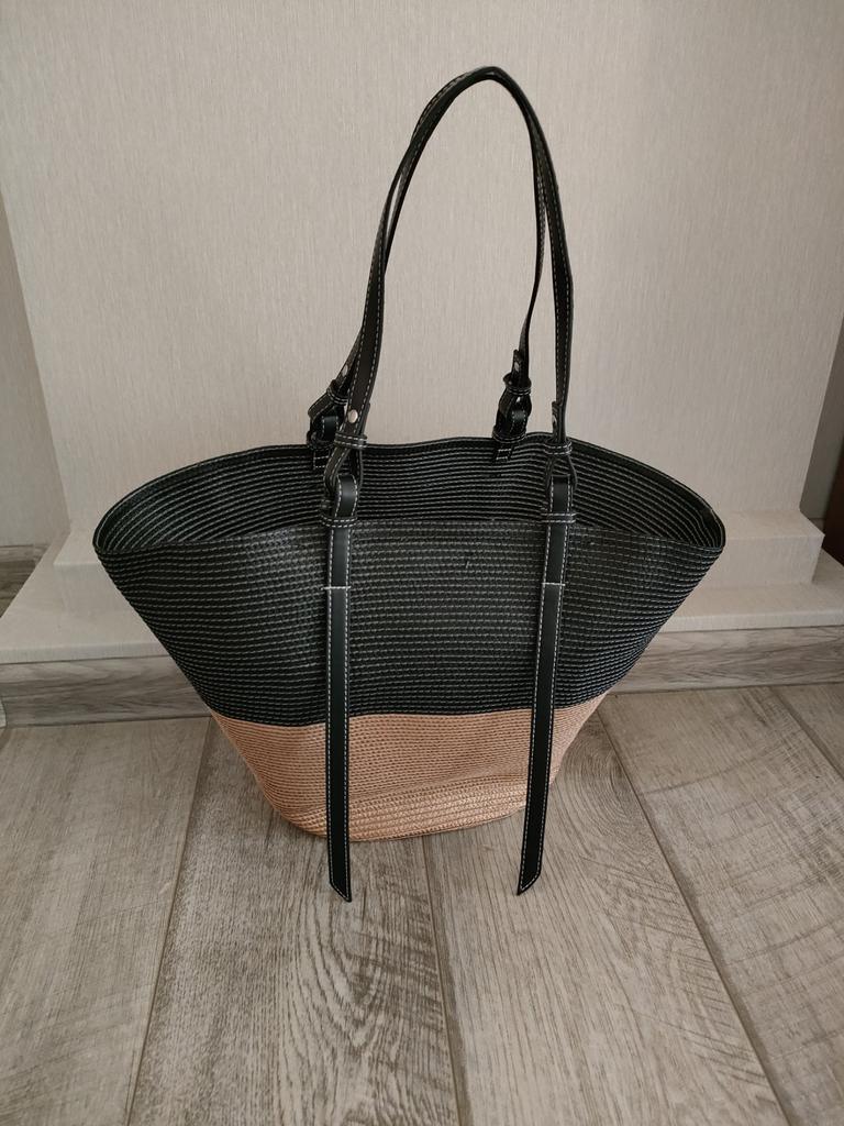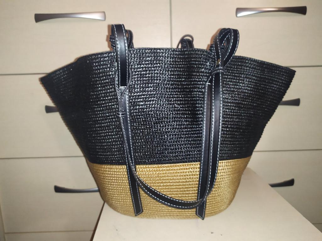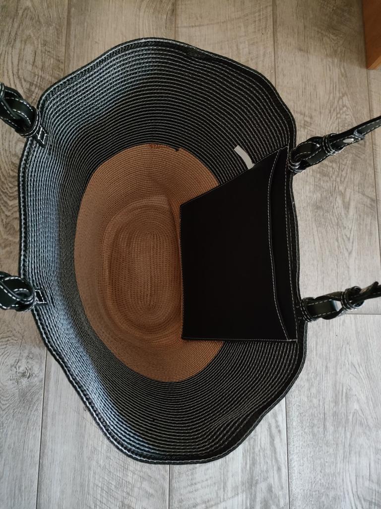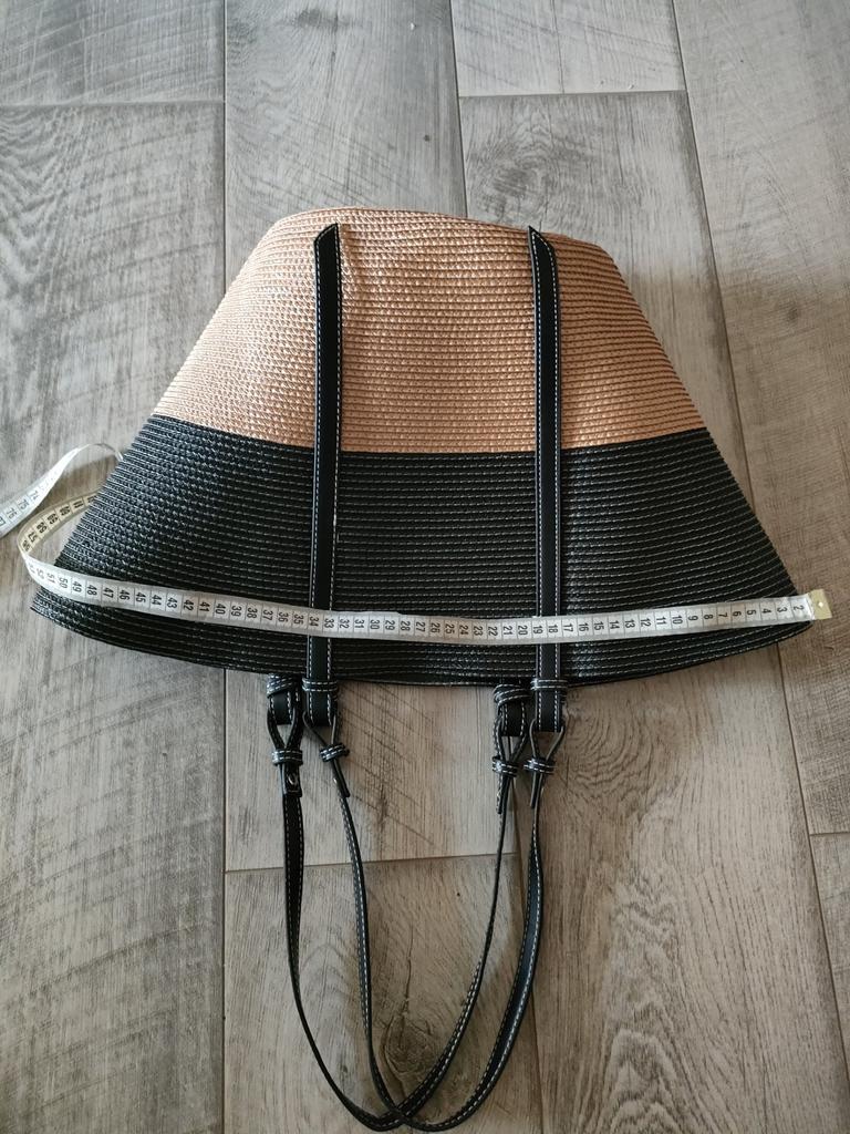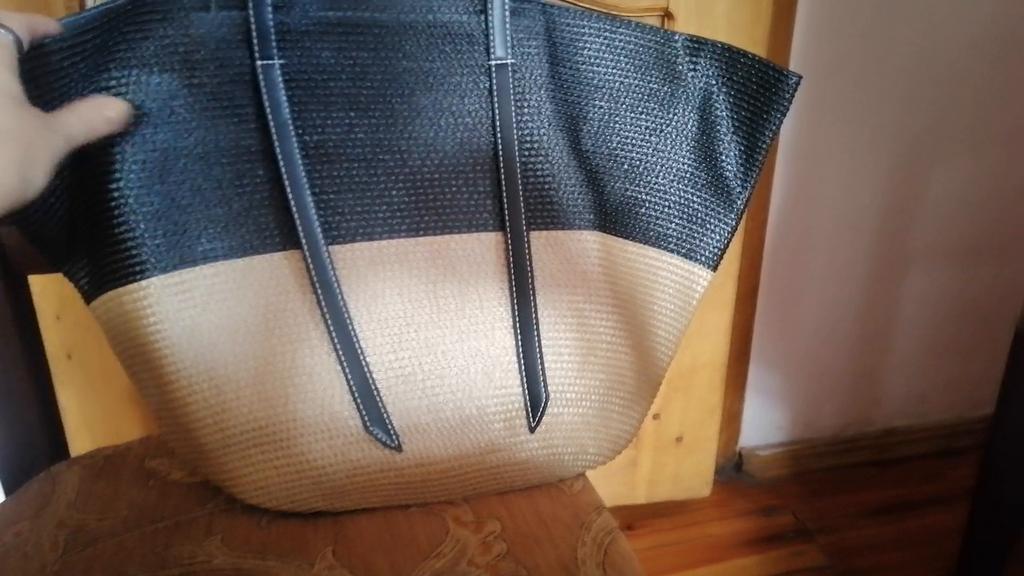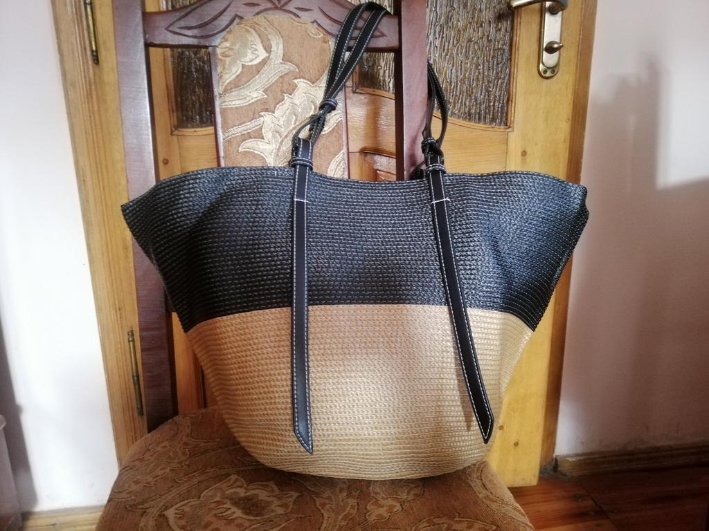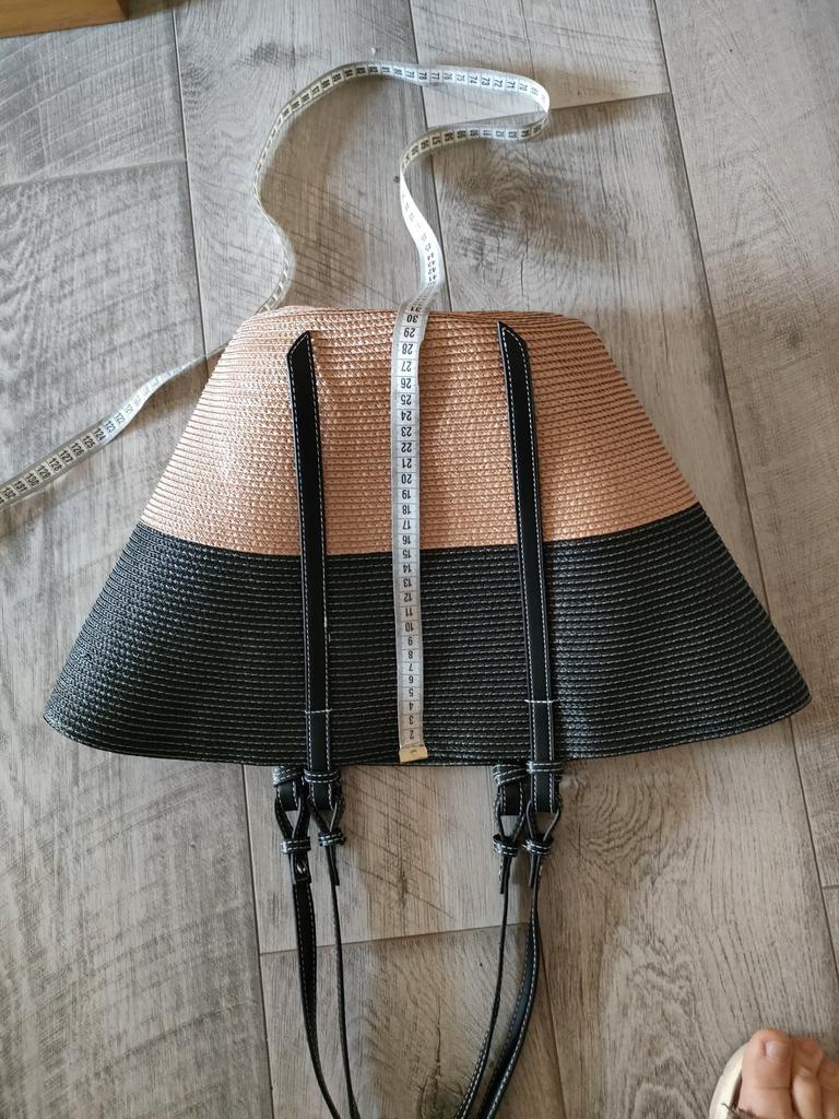 Large straw shopping bag. Suitable for both the beach and the city. Very roomy, checked. The bag has handles made of artificial leather, as well as an internal deep pocket for a phone and a wallet. I liked the black and beige one better, the seller also has a completely beige one with black handles. The material of the bag is strong, at the same time smooth, unfortunately they sent it crumpled on the sides, I hope it will even out if you fill the bag with something. I was especially pleased with the fast delivery. P.S. The bag never leveled out, maybe if you try a steamer. It's a shame.