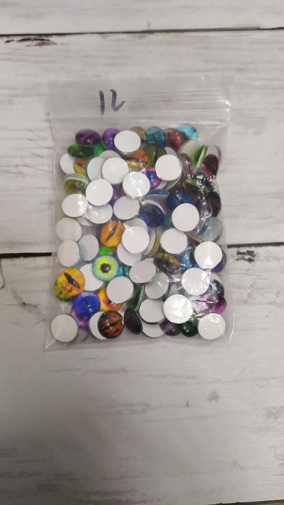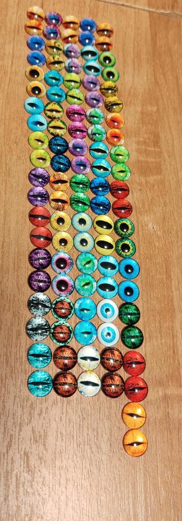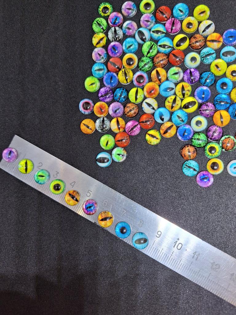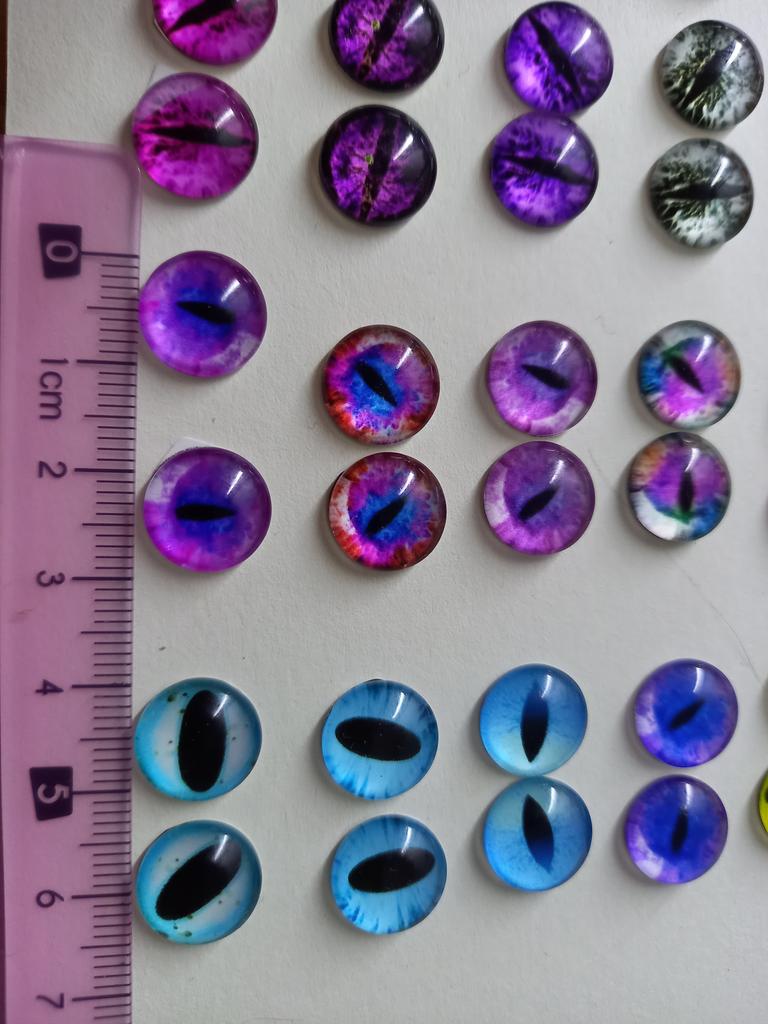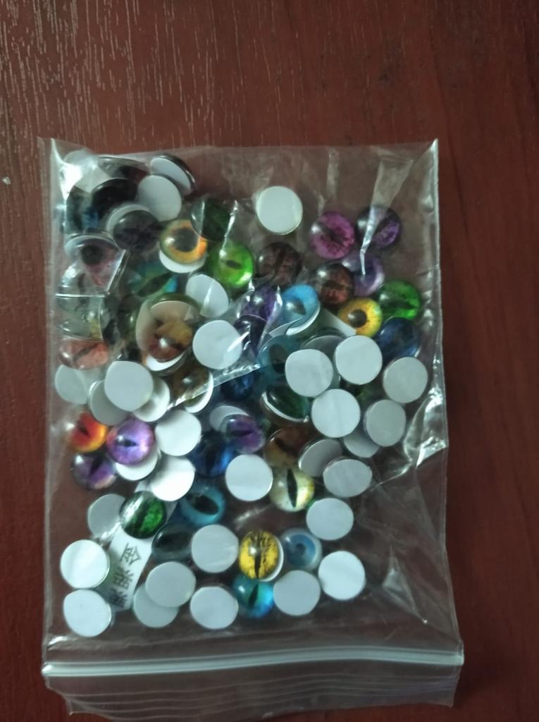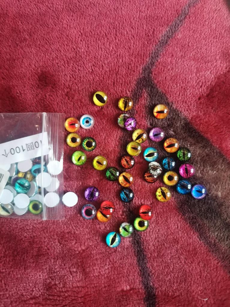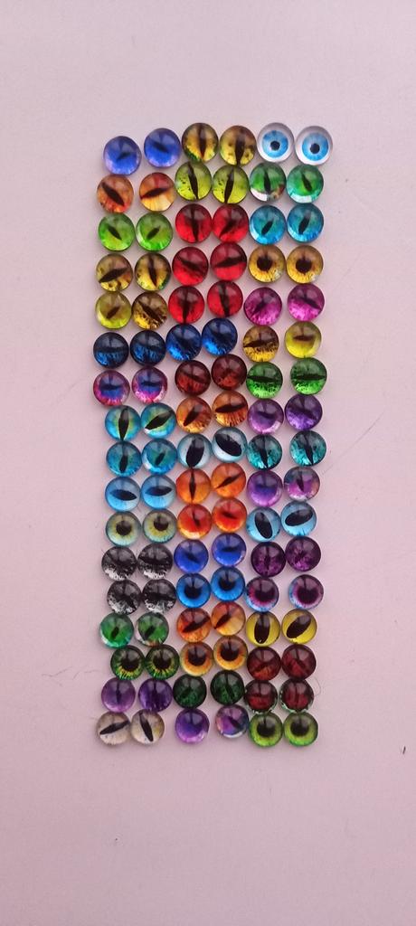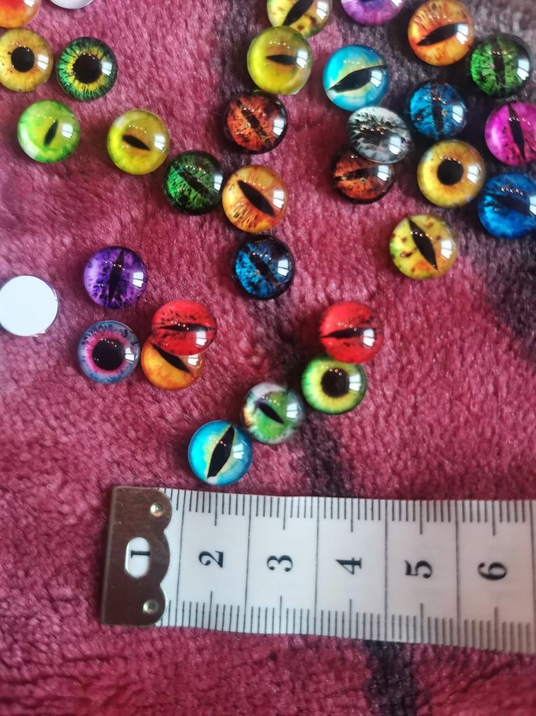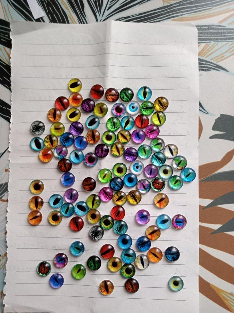 The eyes were 1cm as I ordered, 50 pairs arrived, 100pcs. They are beautiful and different, I will use them in my creative work.