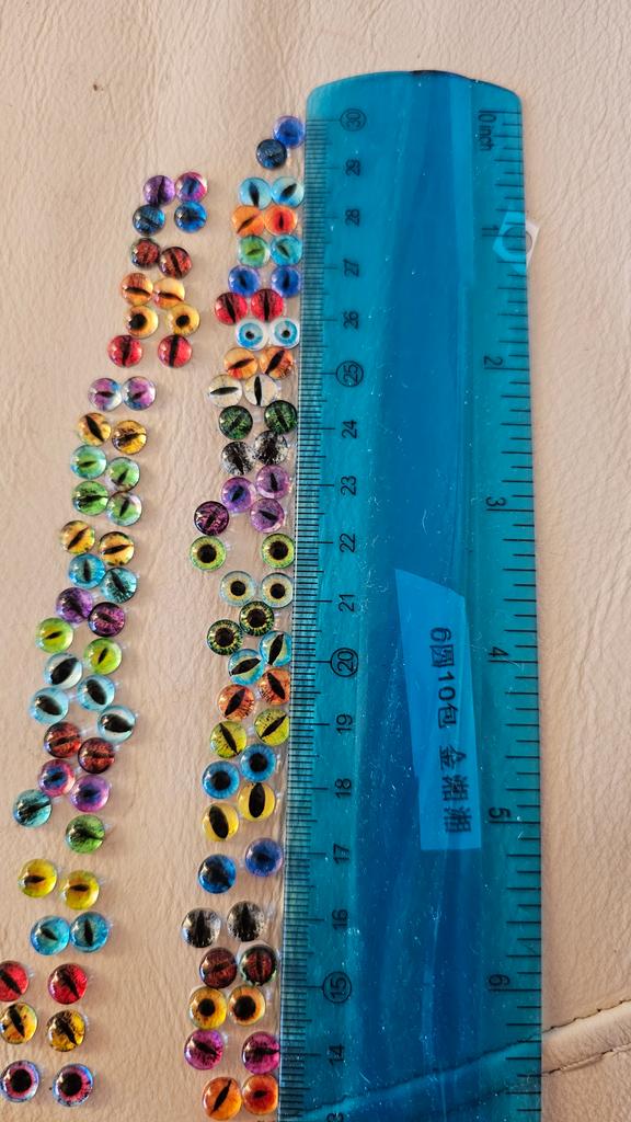 I ordered 10mm eyes, but they arrived 6mm, very small. I'm disappointed