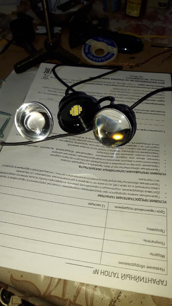 I just had time to connect it to the battery and check the brightness when one of the diffuser lenses fell out. It's a pity, it shines brightly.