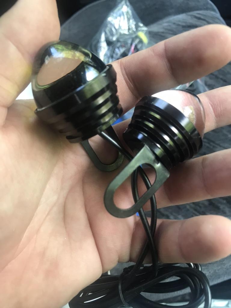 Turned up broken wire not connected to 1 of the lights and the other 1 lens not fitted.if you fit them they would be a danger to you and other road users