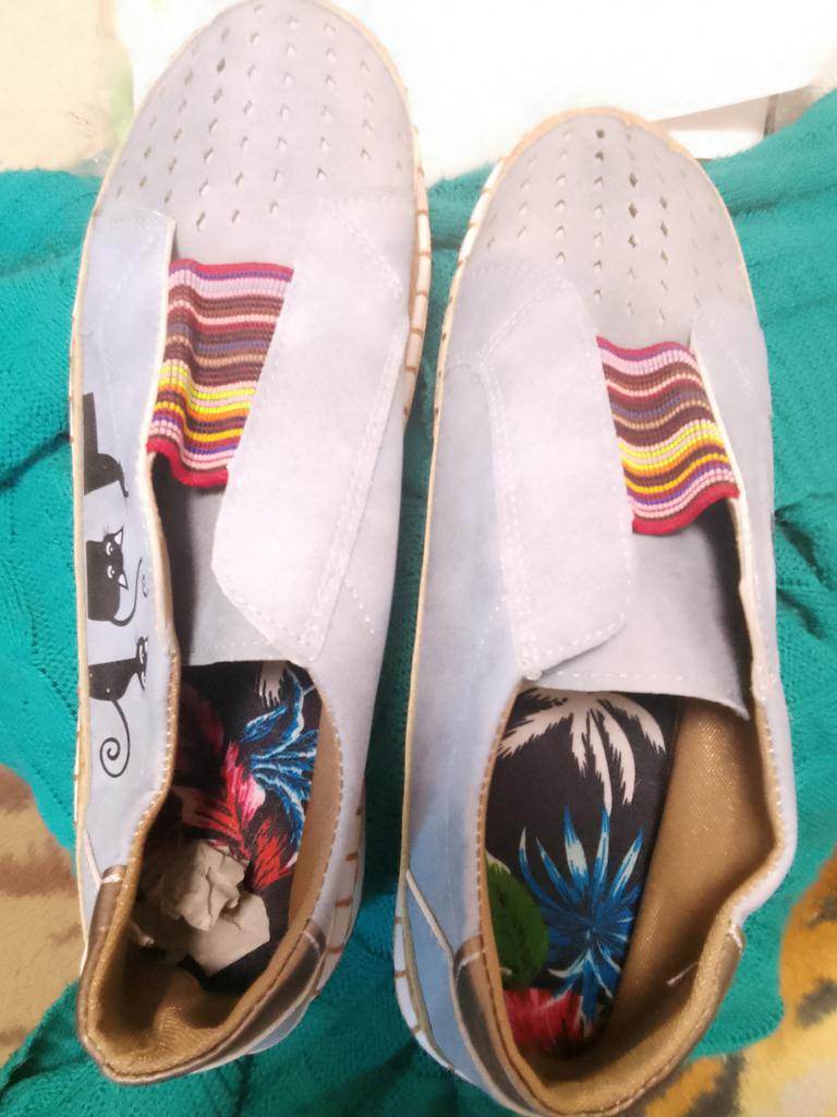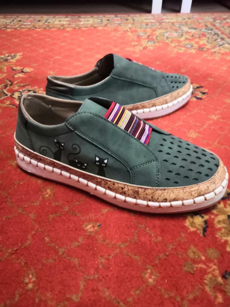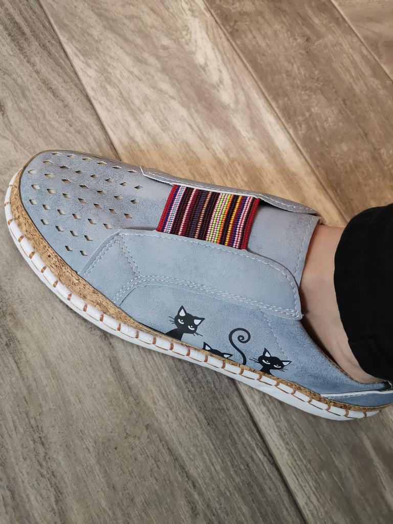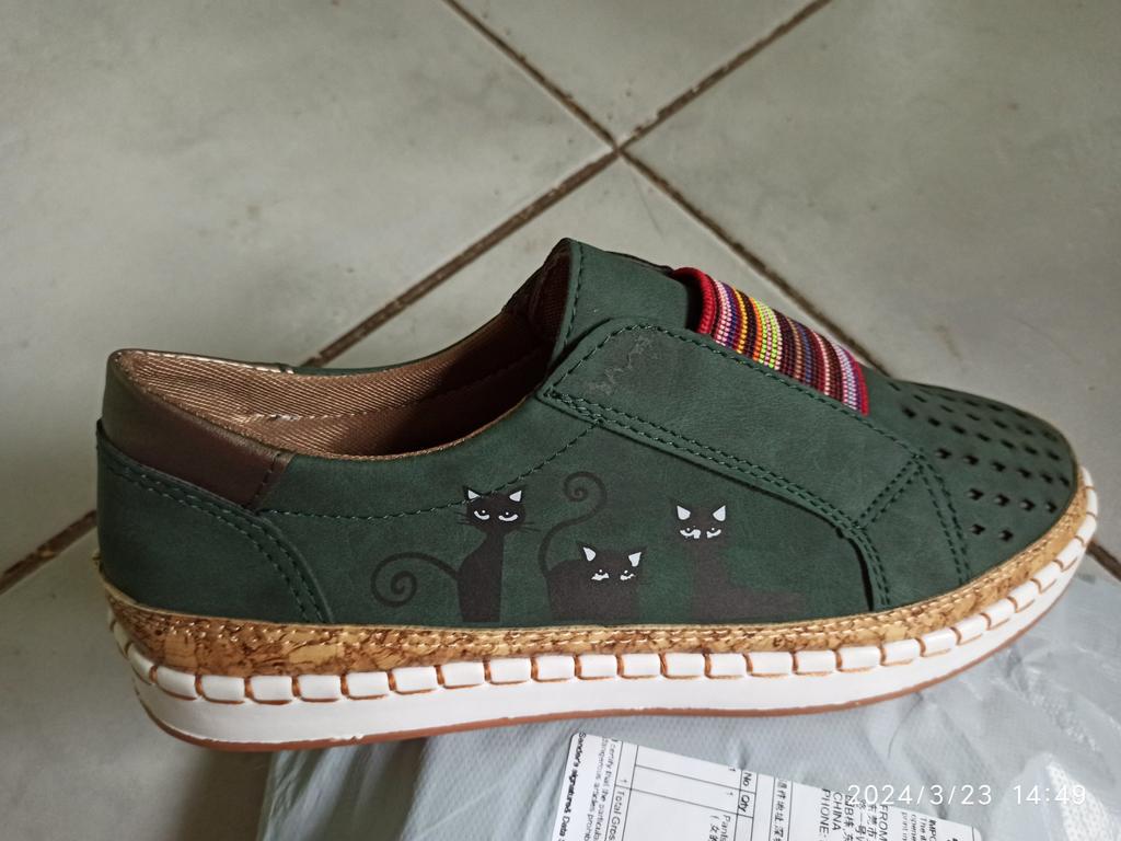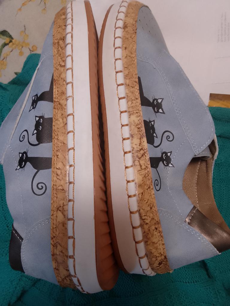 Super shoes suede comfortable light in the middle colored elastic I took 39 times, 41 times fit well, even a little loose The sole is non-erasable There are cats painted on the outside