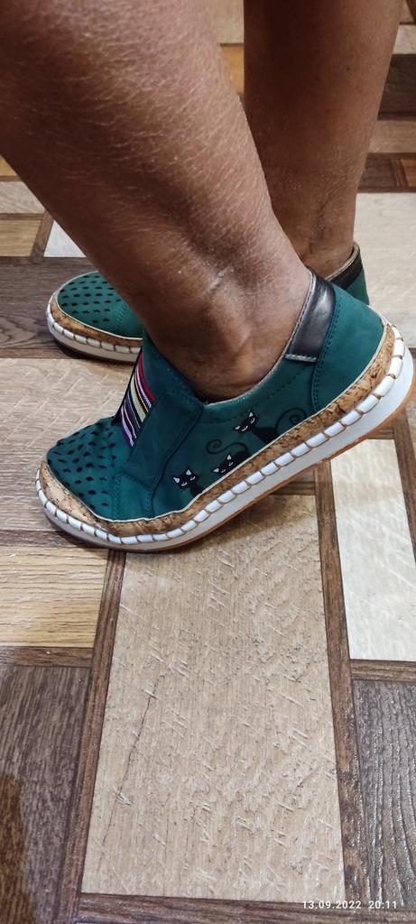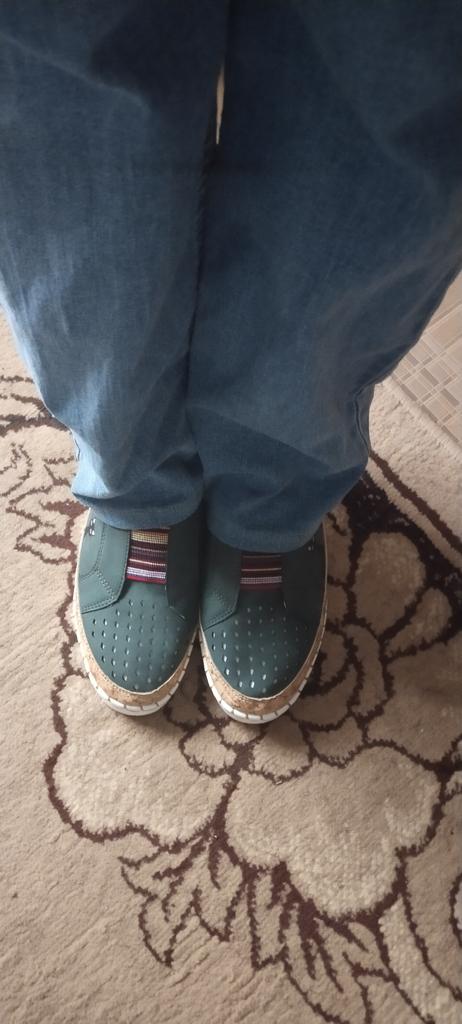 The color does not match, much darker than in the photo, closer to emerald. The size 39 fits my size 38, but the shoes are very wide. Comfortable, everything is sewn with high quality.
