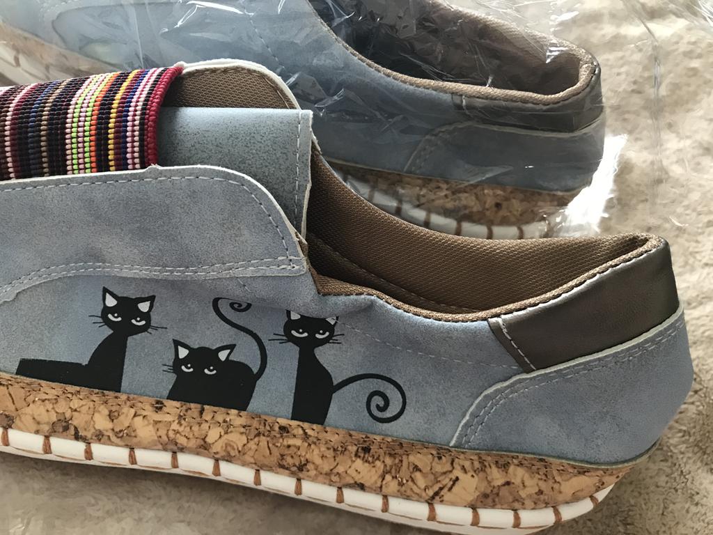 Women's Plus Size Casual Flat Shoes Elastic Overshoes Cat Print Single Shoes