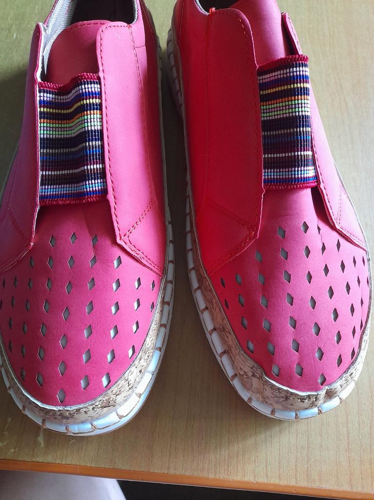 super for 41 took 42, slightly loose, good for very wide feet The color is brighter than in the picture. Red and beautiful