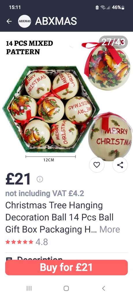What I should of received ,14 baubles 2 designs , instead I received 14baubles 1 design