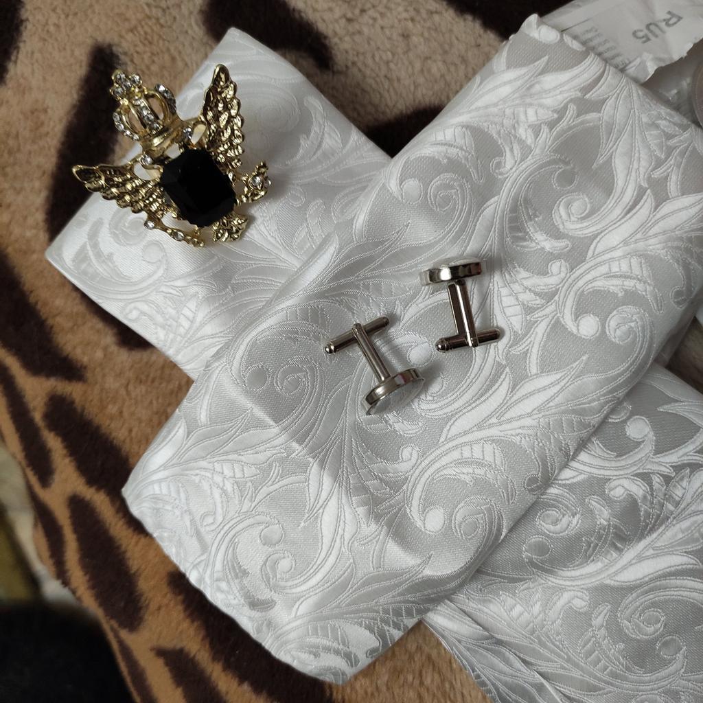 Classic Men Silk Ties Fashion White Paisley Floral Formal Party Necktie Pocket Square Cufflinks Tie Set Men Gift DiBanGu