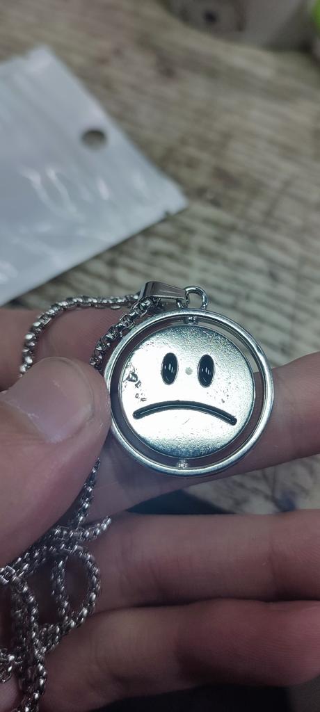 I didn’t expect there to be such a big pendant, but it’s cool☺️ The chain is 70 cm long, a smiley face on both sides👍