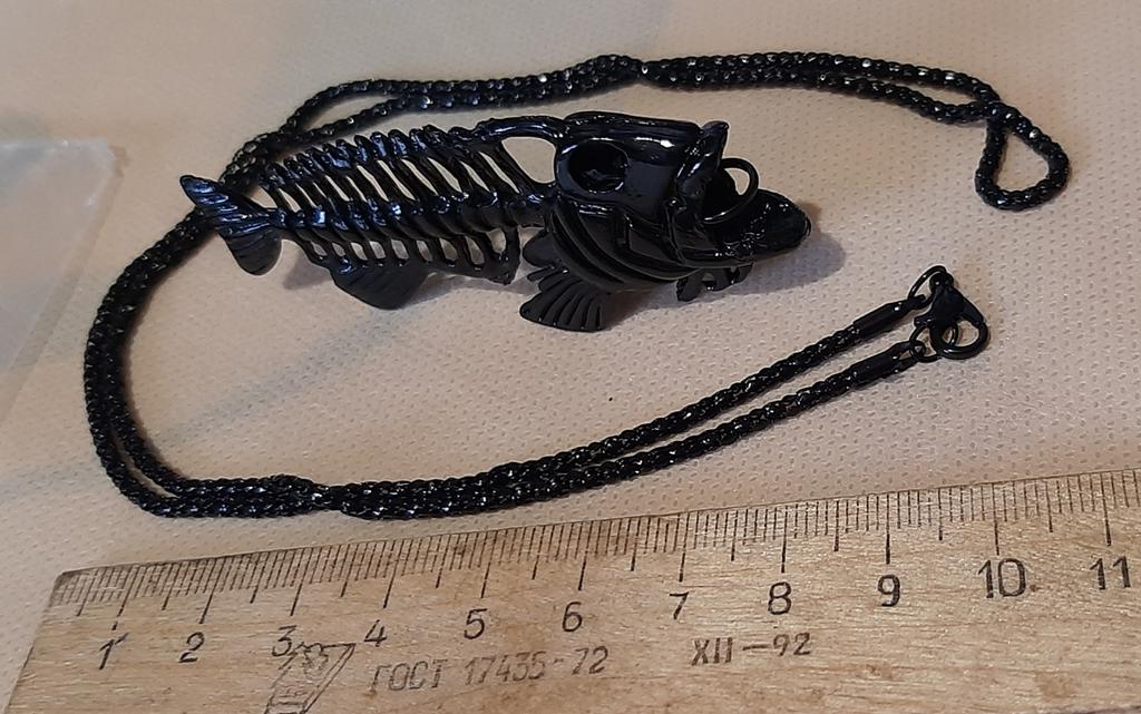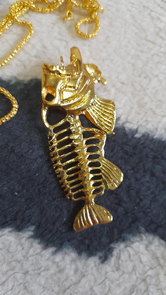 Fish Bone Fish Skeleton Pendant Surfer Chain Necklace Gold Black Unisex Jewellery