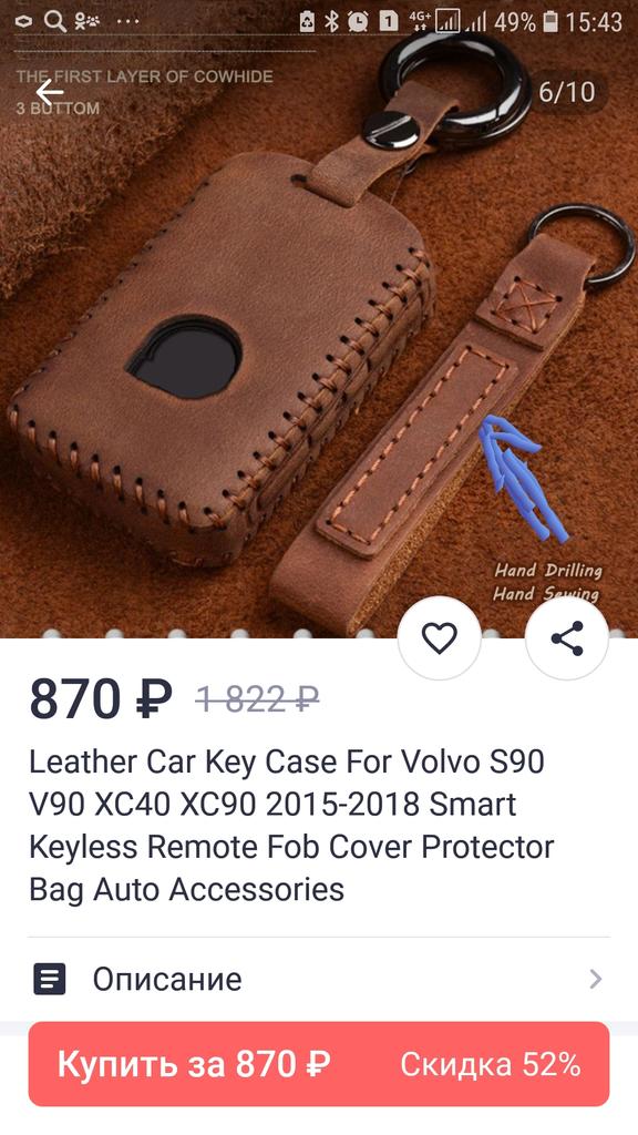 Leather Car Key Case For Volvo S90 V90 XC40 XC90 2015-2018 Smart Keyless Remote Fob Cover Protector Bag Auto Accessories