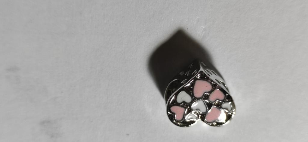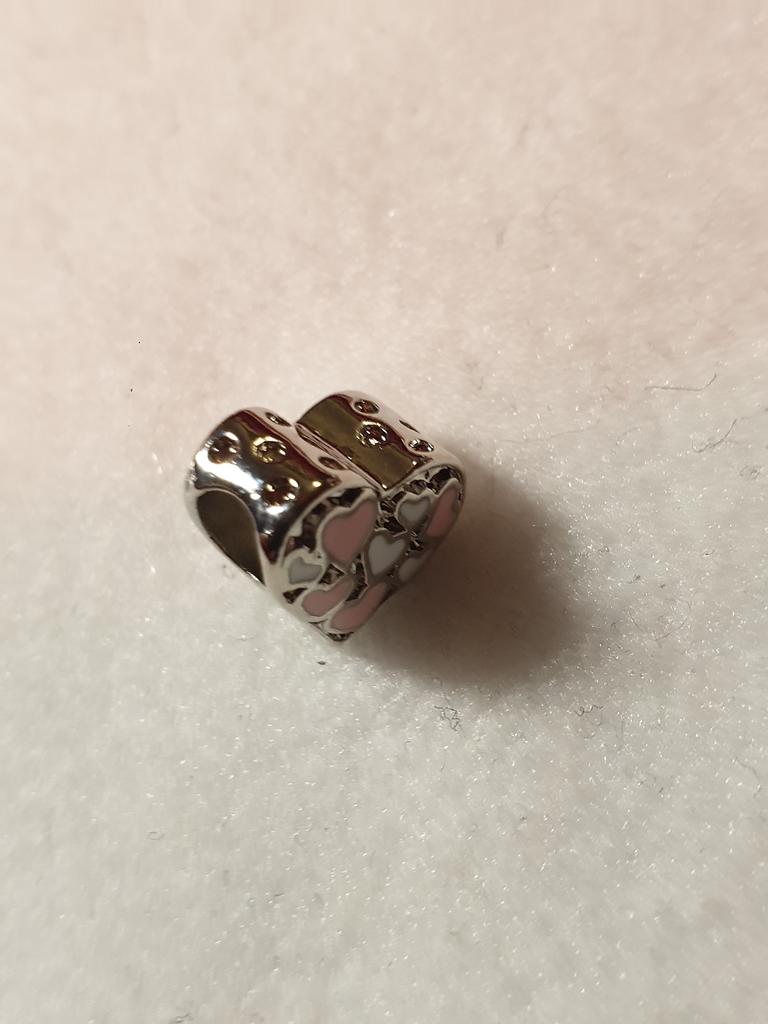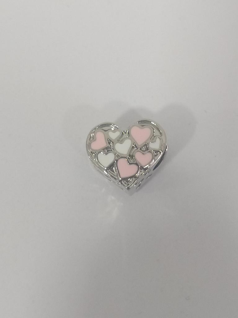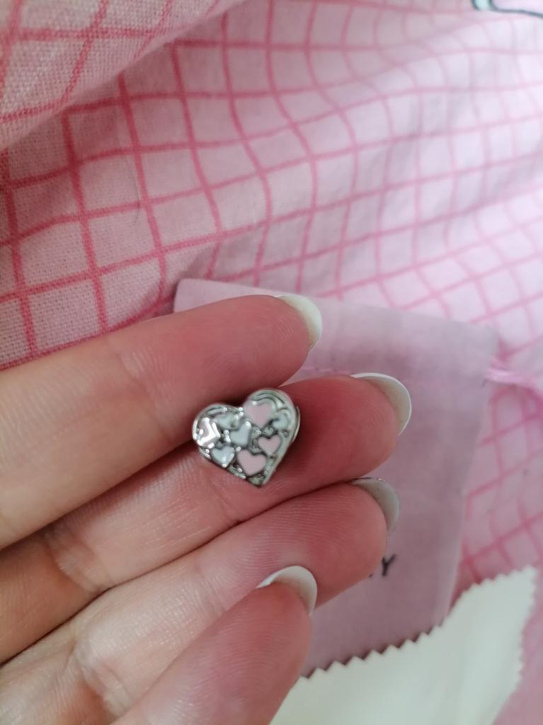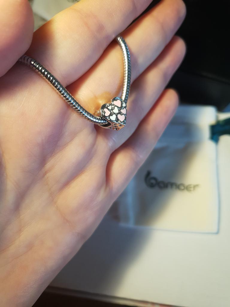 BISAER Romantic Pink and White Heart Charm Bead for Original Bracelet Bangle DIY Jewelry