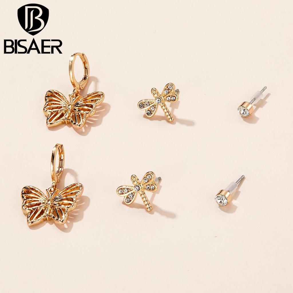Bisaer Exquisite Butterflies & Dragonflies 3 Pair of Stud Earring Set for Women Fashion Jewelry