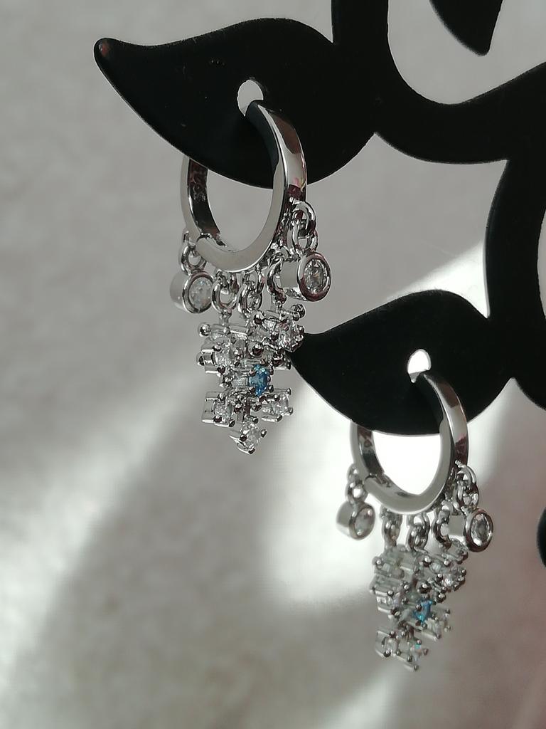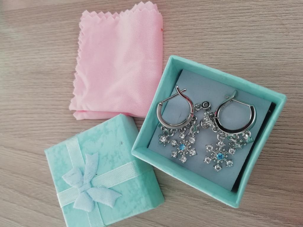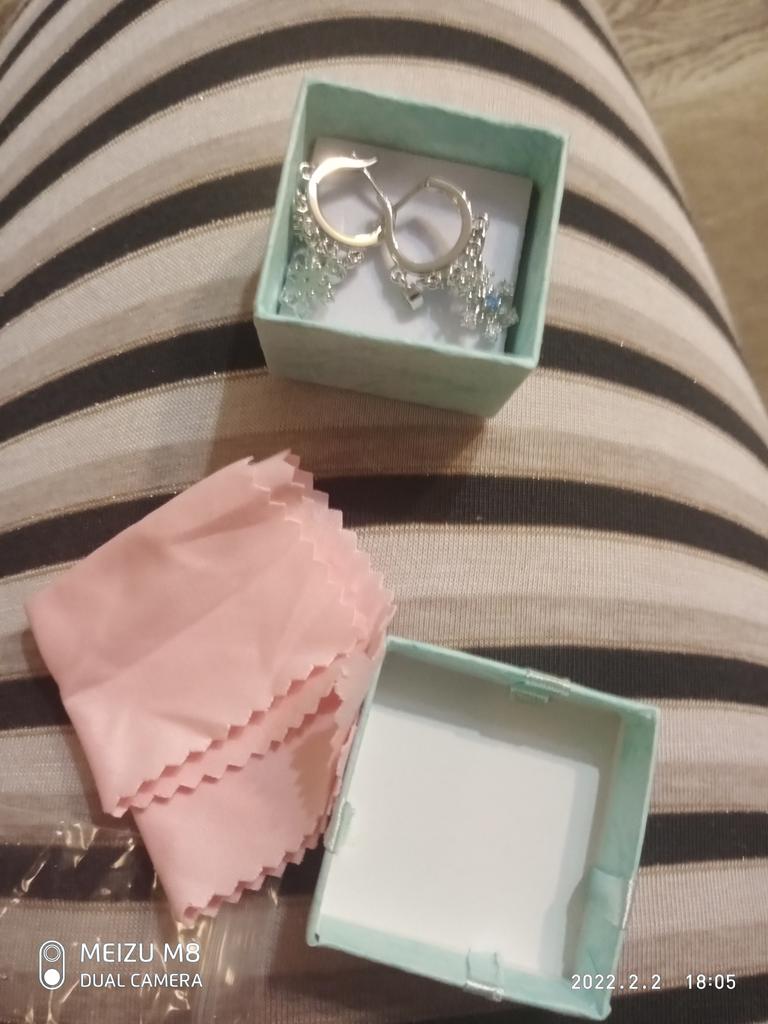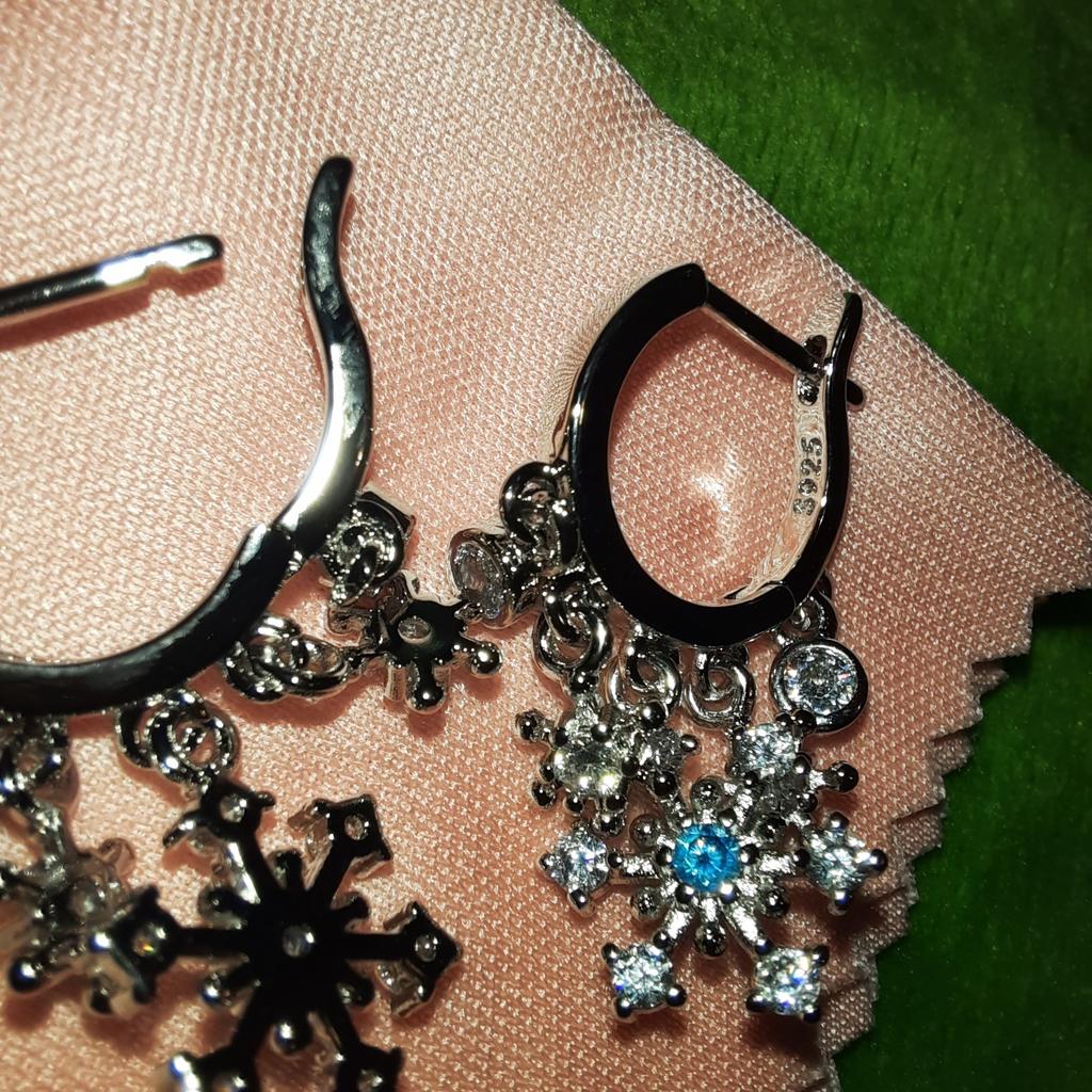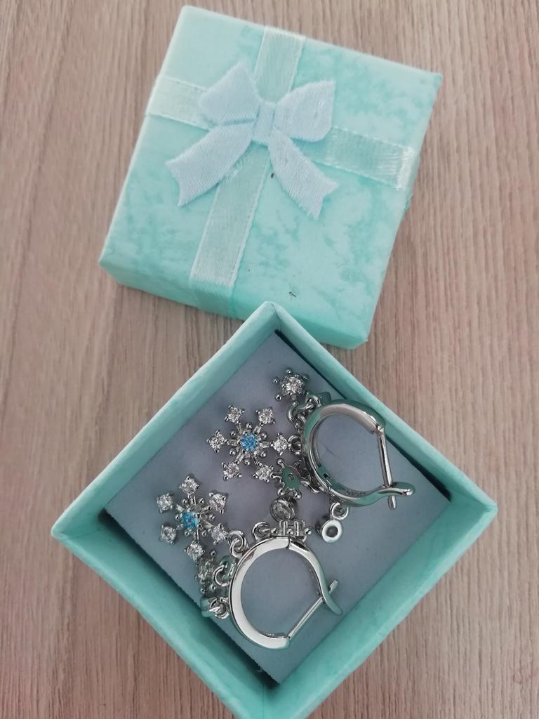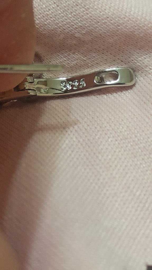 The product corresponds to the description declared by the seller. Very elegant earrings. There is a sample marker, so I think it is silver. I now have a set of earrings, a bracelet and a pendant.