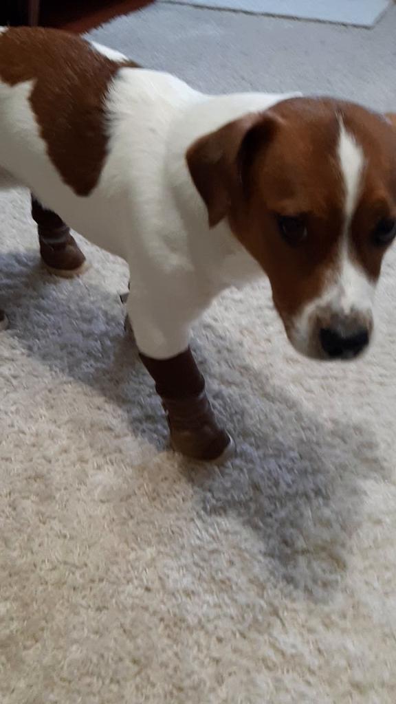 Cool boots. The size is right. He chases them and clucks like a little horse 😂 It's a pity that they are only for dry weather, but what to do when there is snow and sleet, puddles. Water and mud get in through the back holes. And the paws are still wet and muddy. It's not very good. And all dogs have front paws that are always larger than the back ones, so why do manufacturers sew 4 identical ones?
