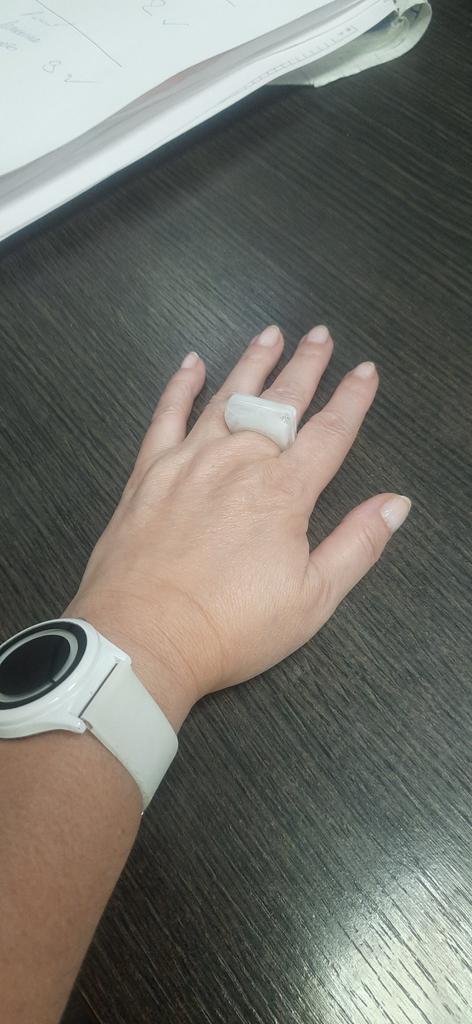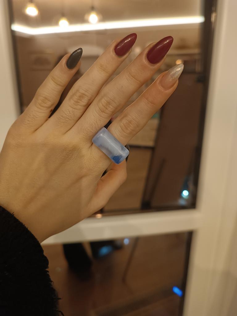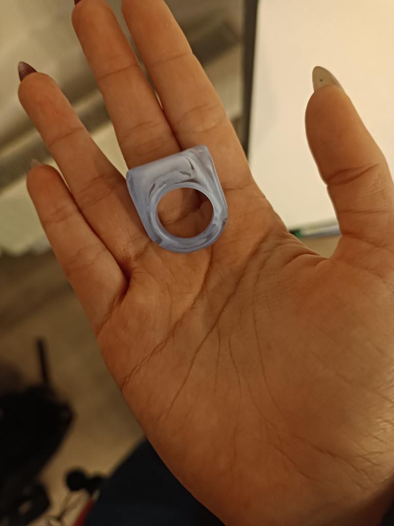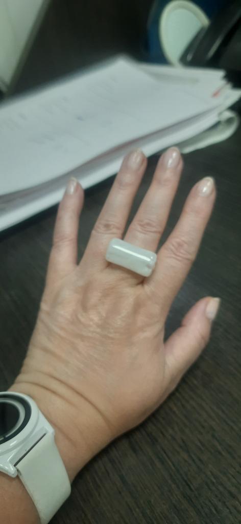 I already have several similar rings, different colors. I like them very much. They look very stylish. Not adjustable. Fits size 18.5.
