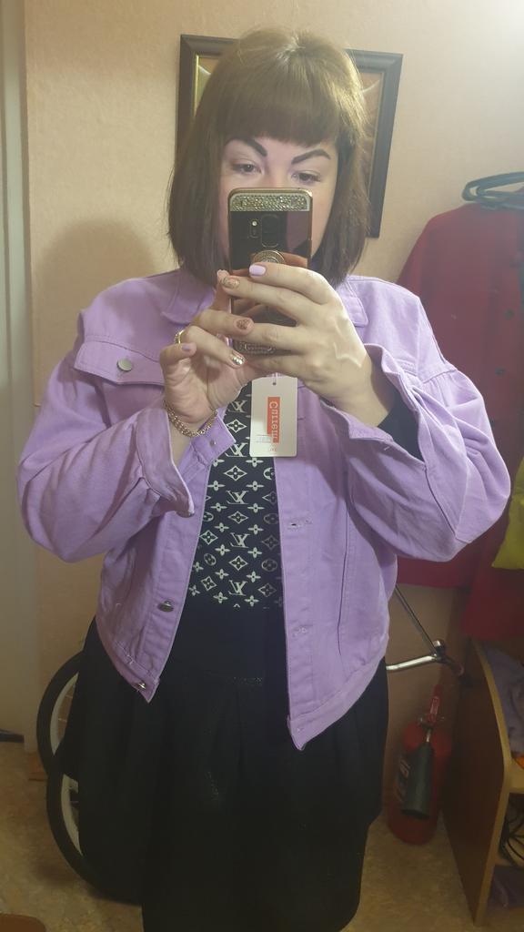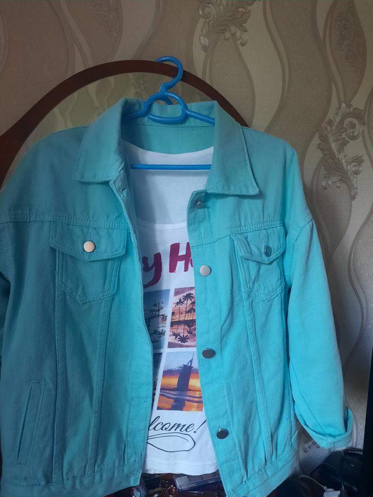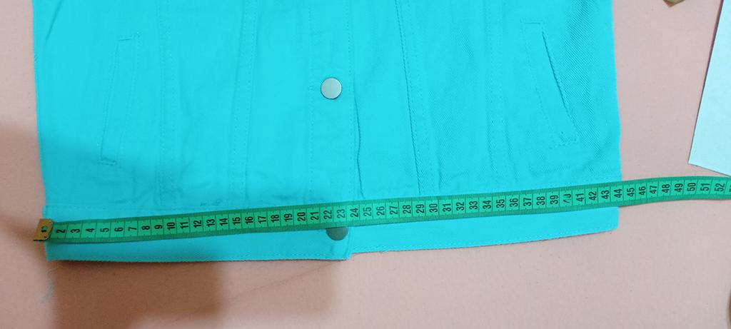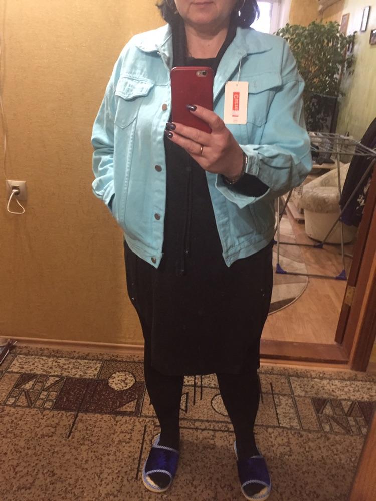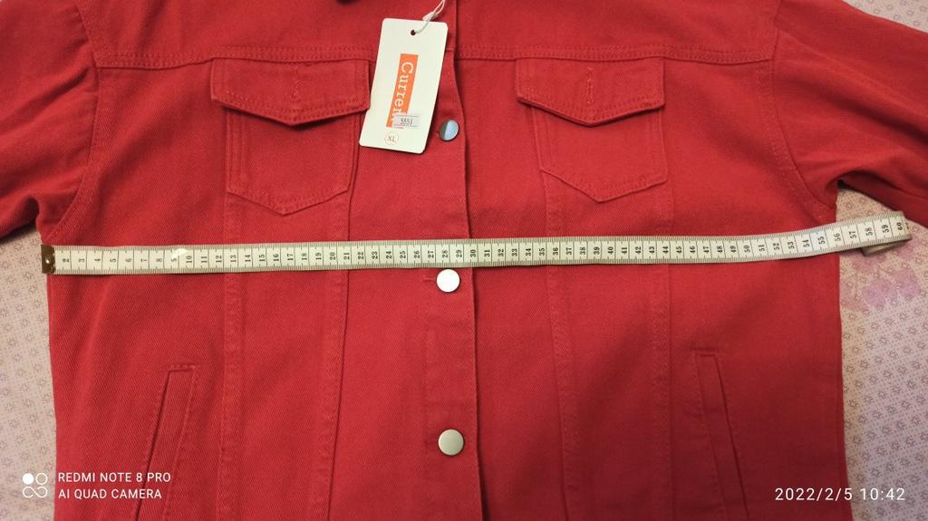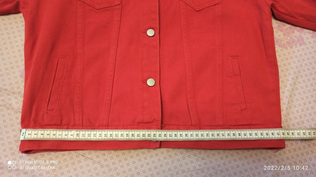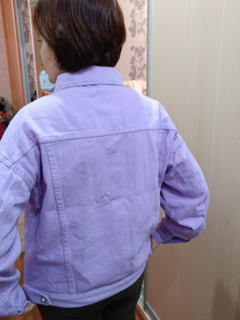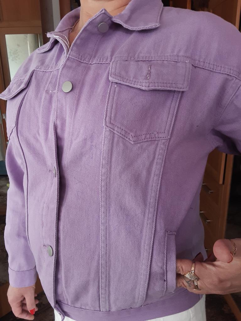 Excellent denim jacket, the color is bright, even brighter than in the picture. True, I haven’t washed it yet, so here xs. The hips are wide, so I took a size larger so that the bottom fits normally.