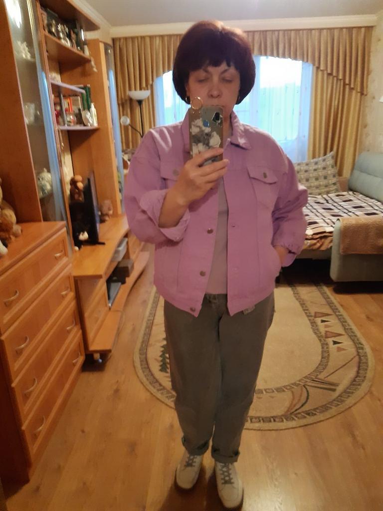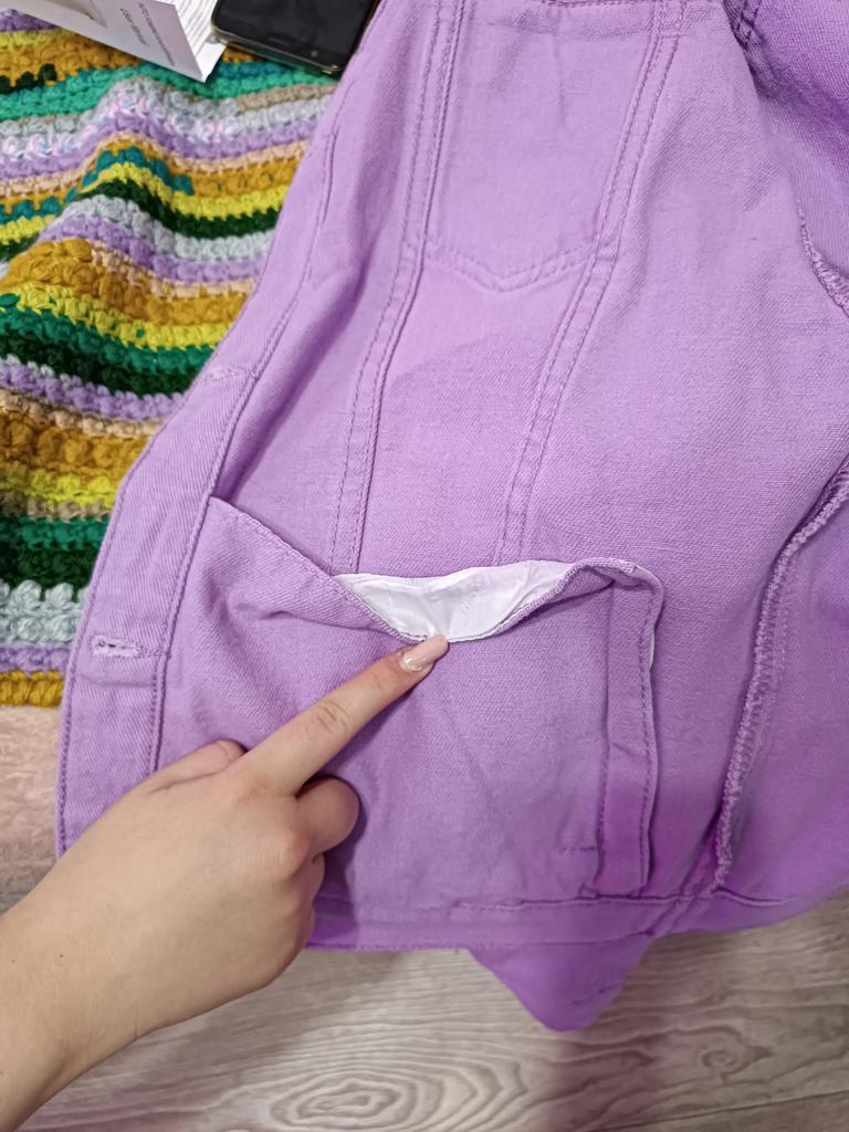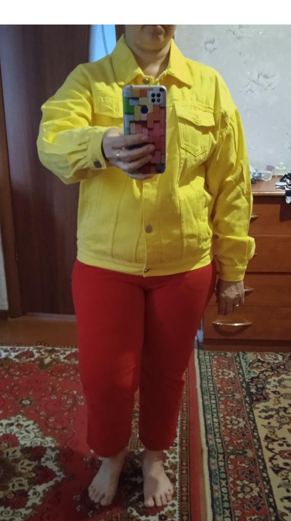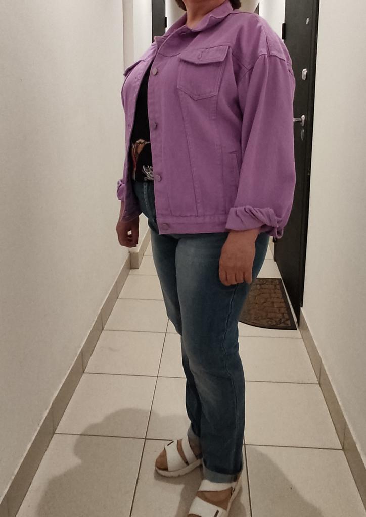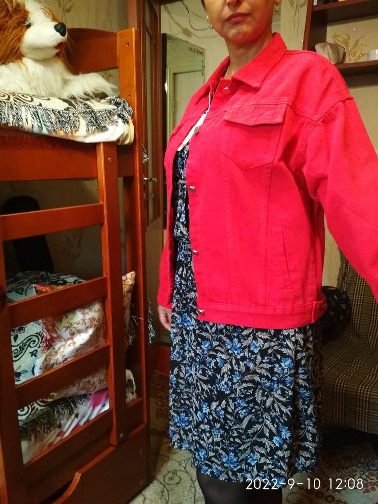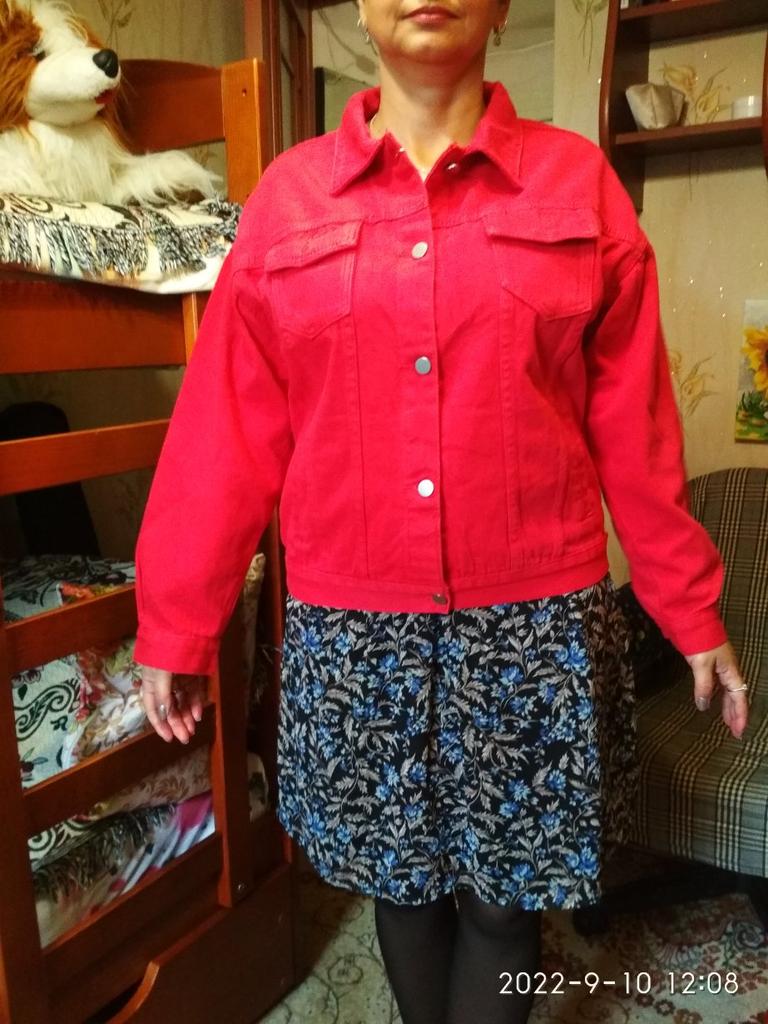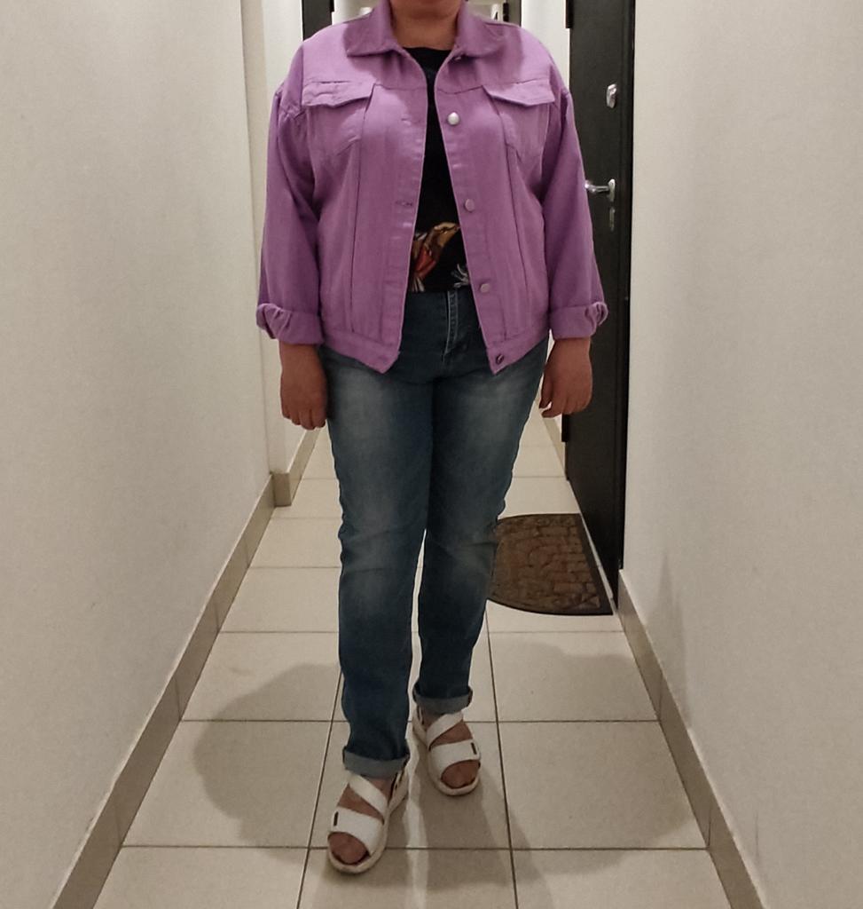 Excellent denim jacket, the color is bright, even brighter than in the picture. True, I haven’t washed it yet, so here xs. The hips are wide, so I took a size larger so that the bottom fits normally.