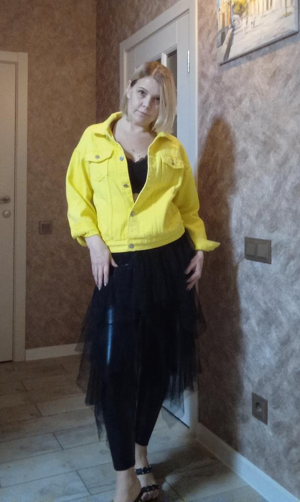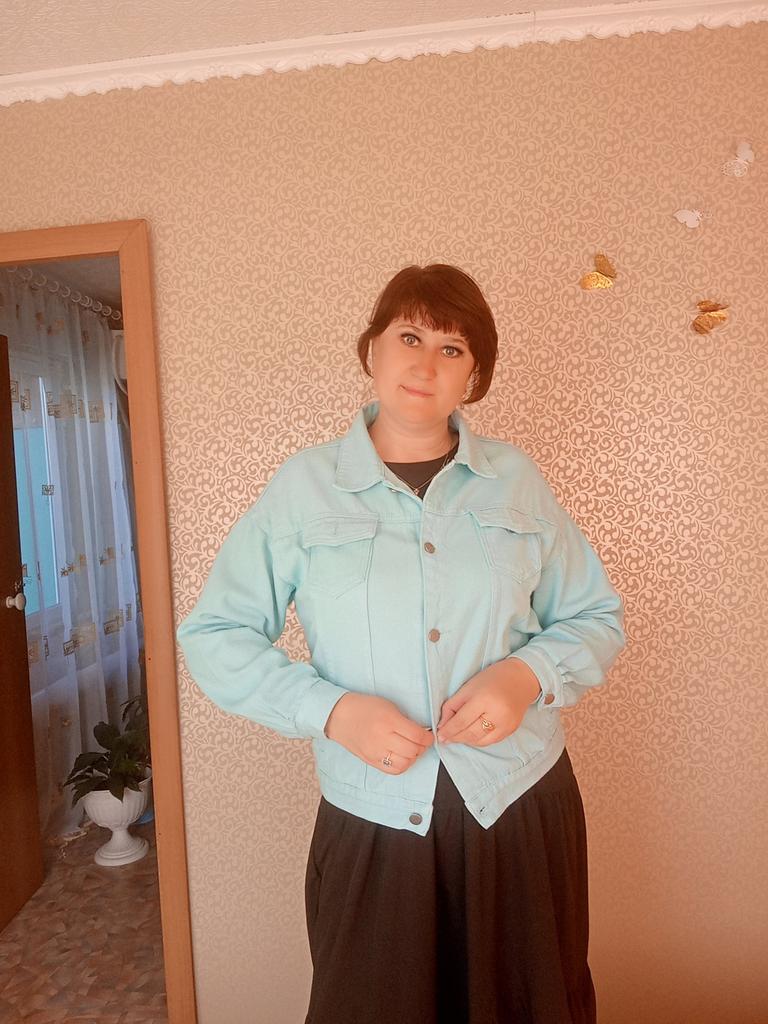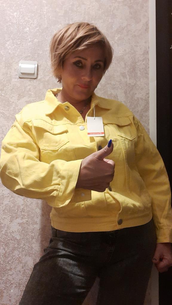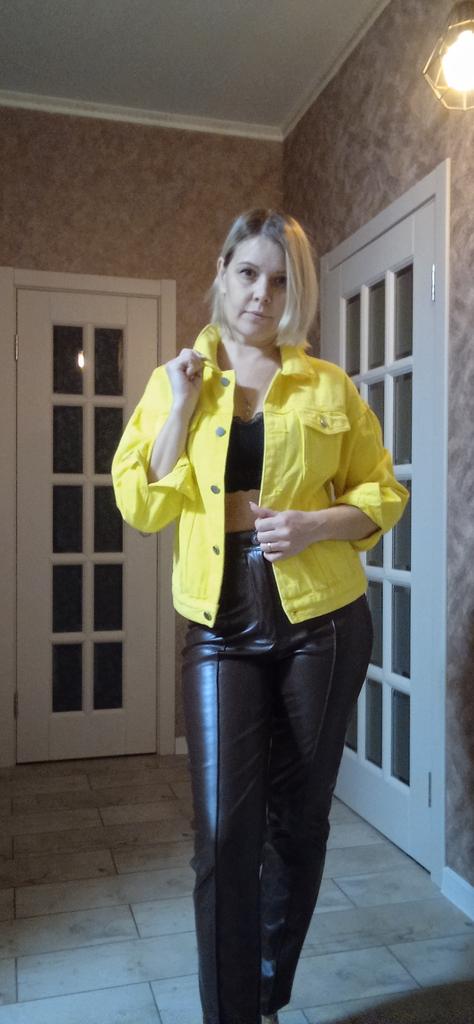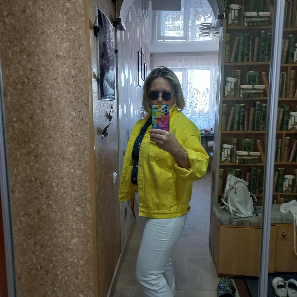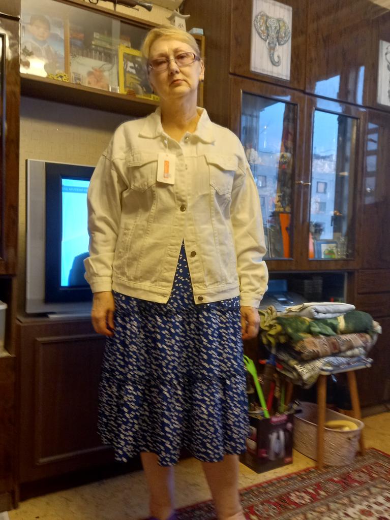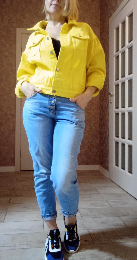 Excellent denim jacket, the color is bright, even brighter than in the picture. True, I haven’t washed it yet, so here xs. The hips are wide, so I took a size larger so that the bottom fits normally.