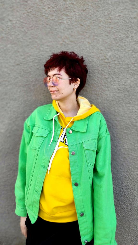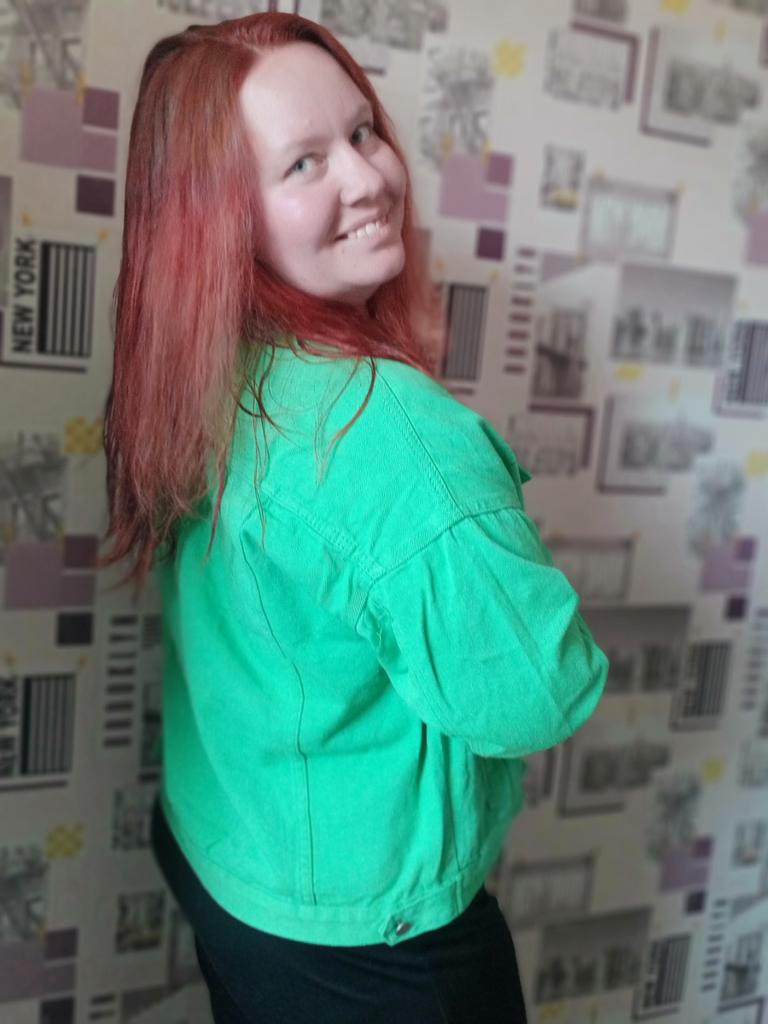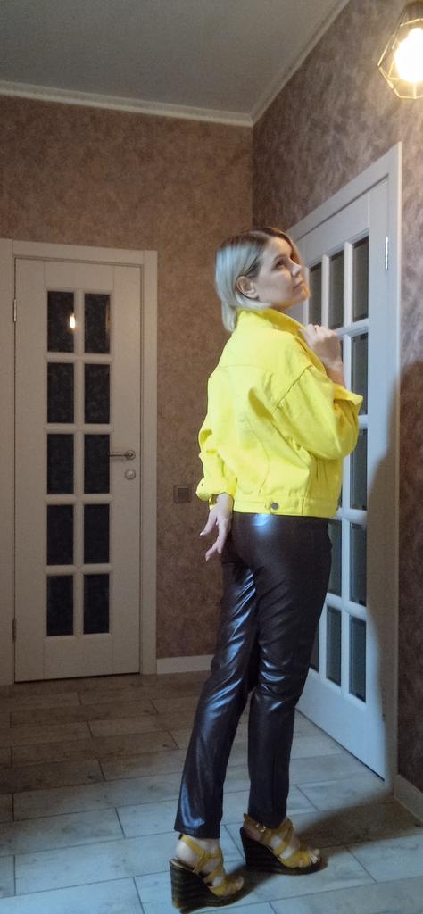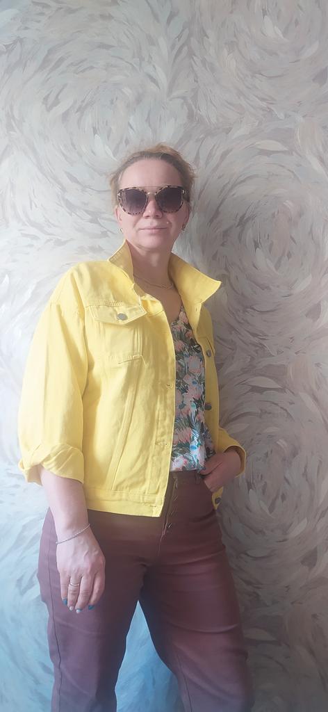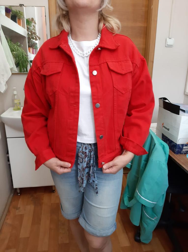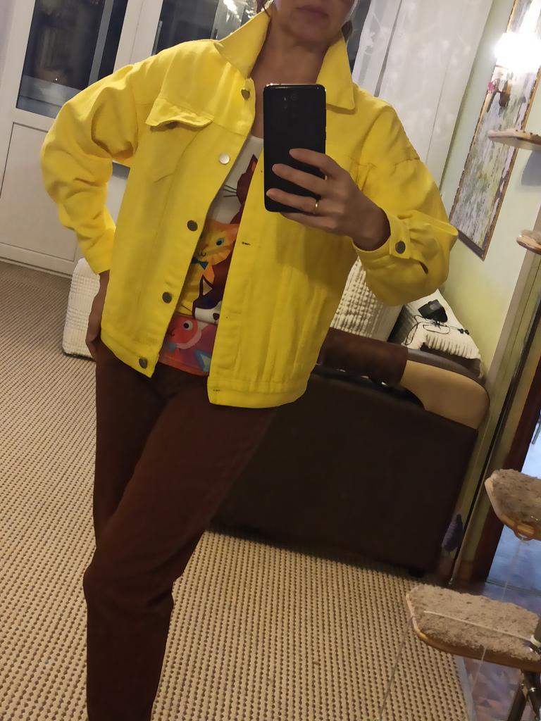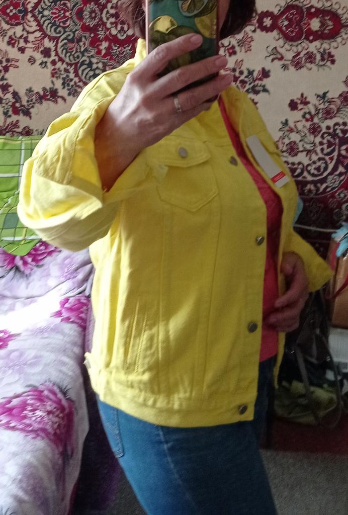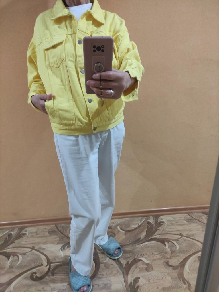 Excellent denim jacket, the color is bright, even brighter than in the picture. True, I haven’t washed it yet, so here xs. The hips are wide, so I took a size larger so that the bottom fits normally.