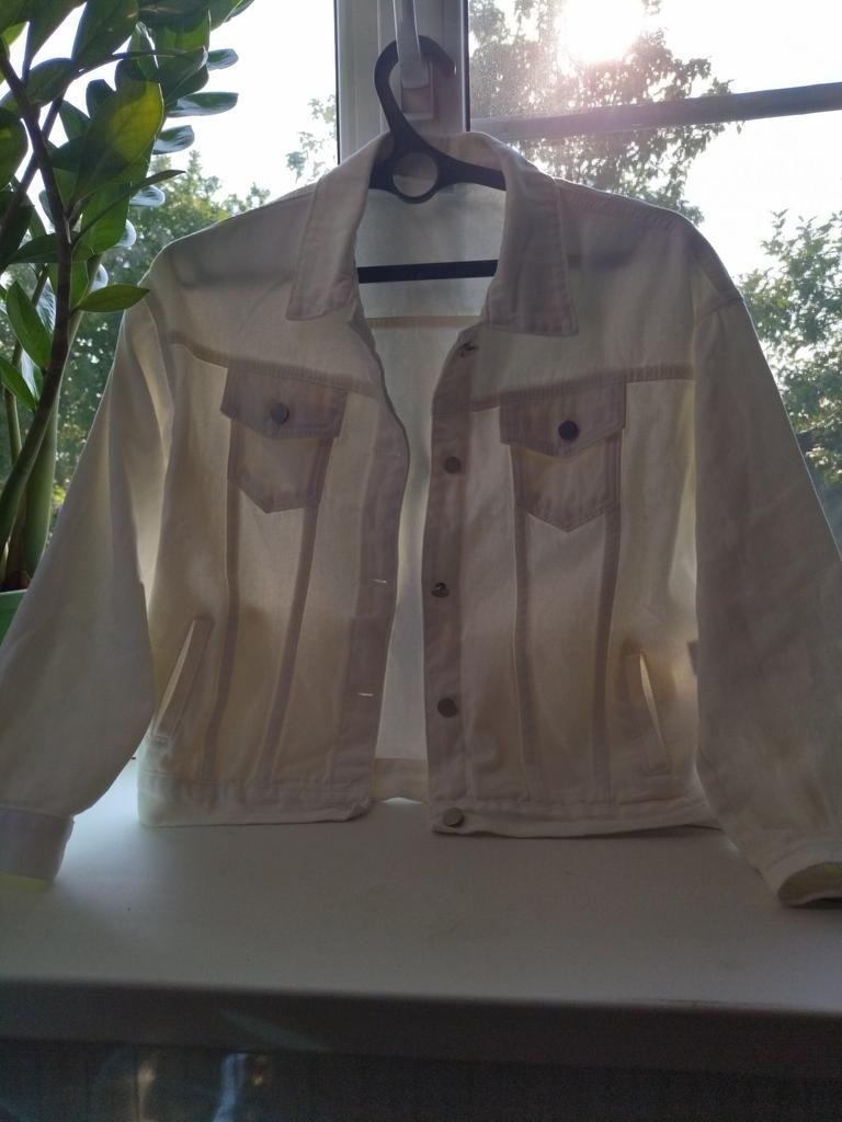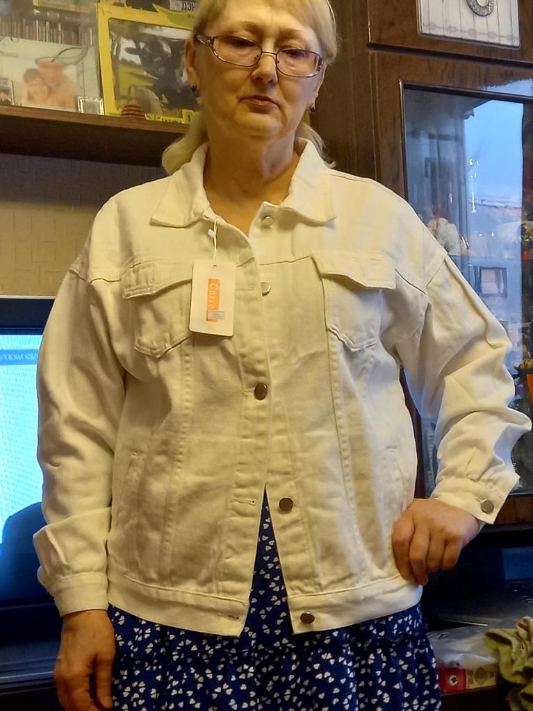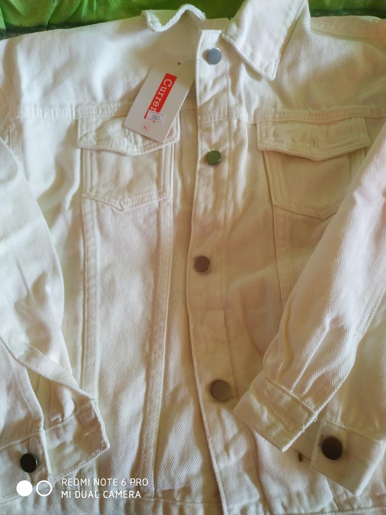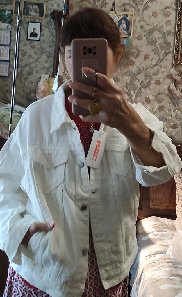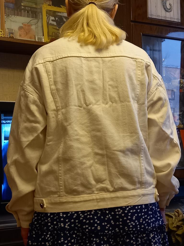 The jacket completely disappointed me, a complete deception, the quality is not denim, but canvas or coarse calico, very heavy in weight, the color is not white - cream, give me the return address