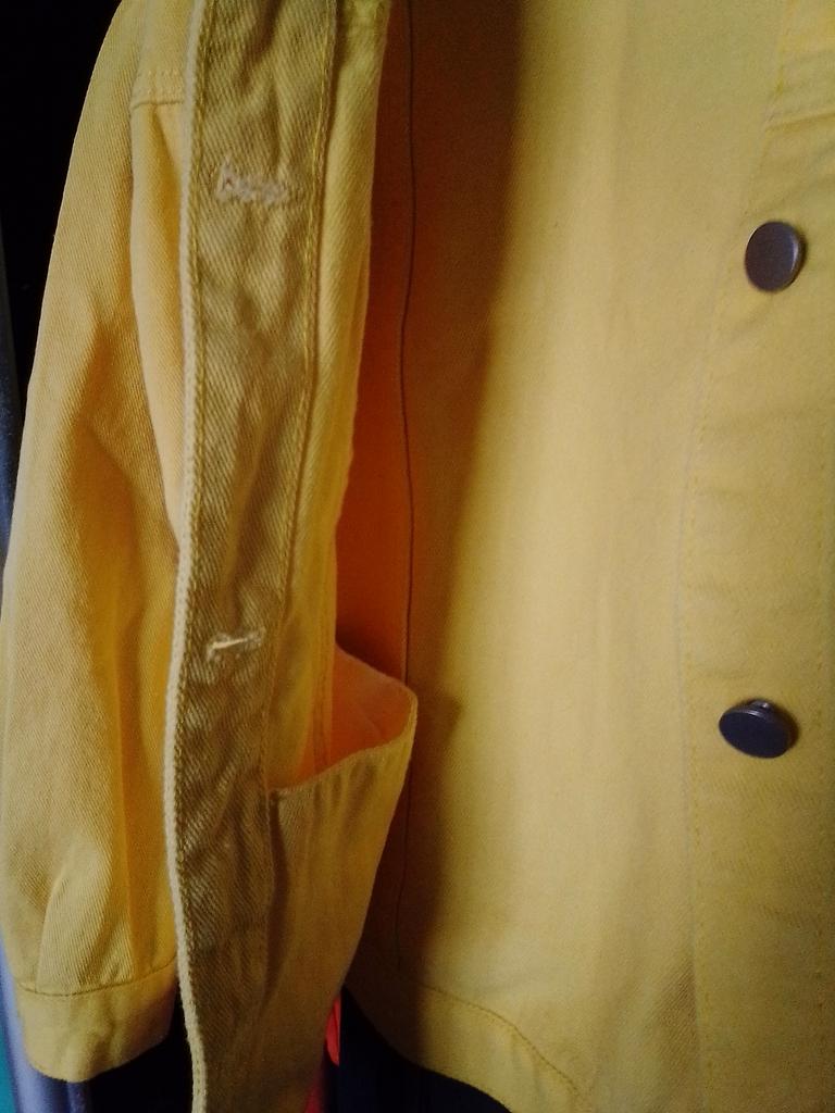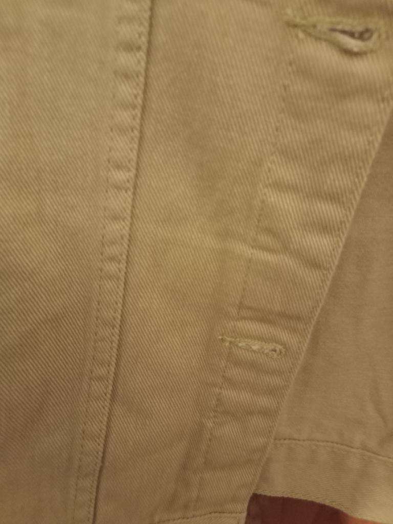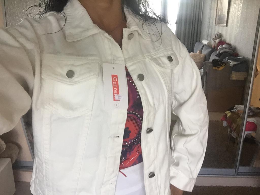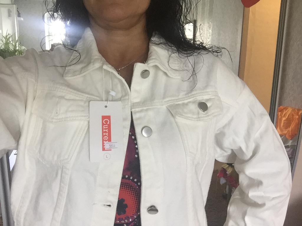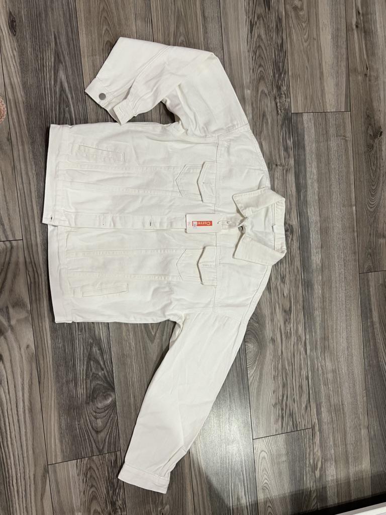 The jacket completely disappointed me, a complete deception, the quality is not denim, but canvas or coarse calico, very heavy in weight, the color is not white - cream, give me the return address