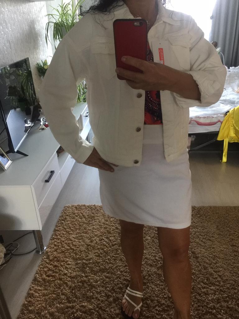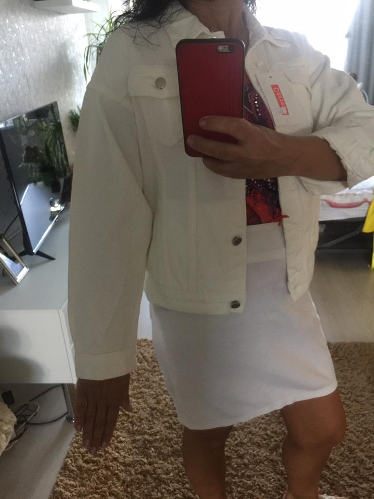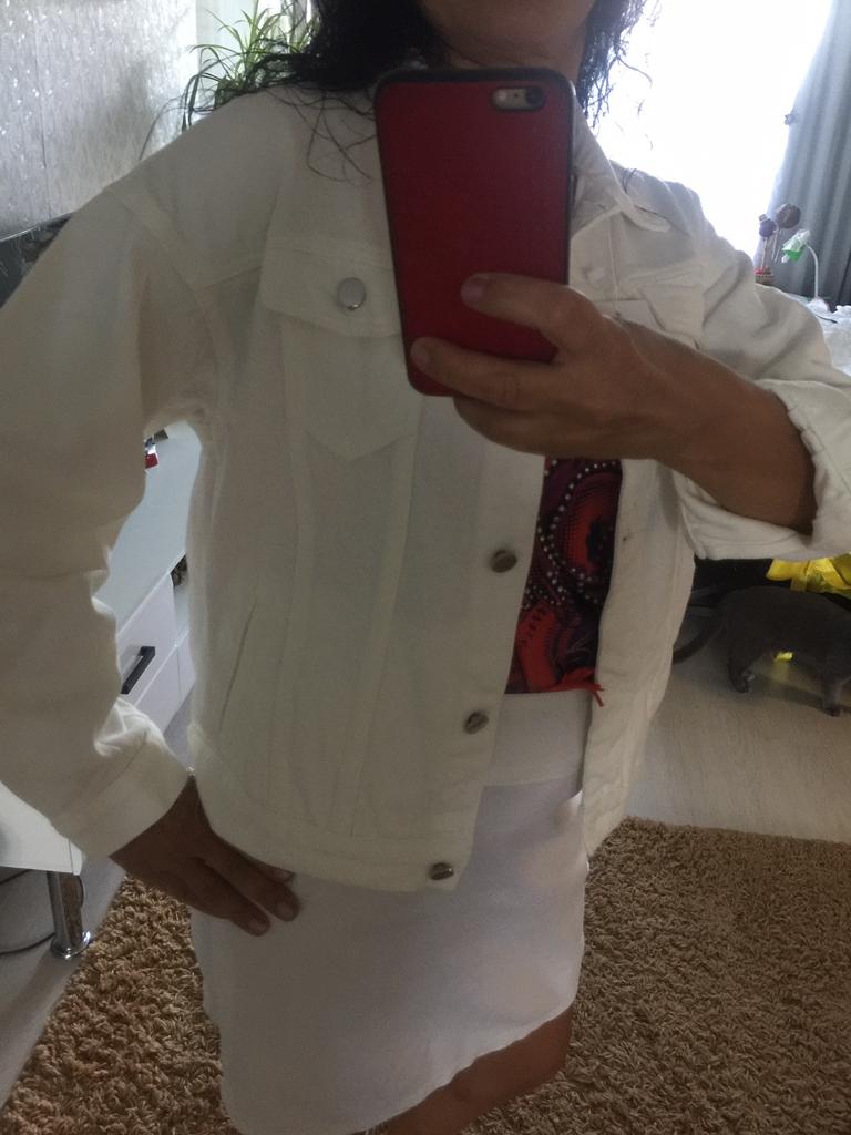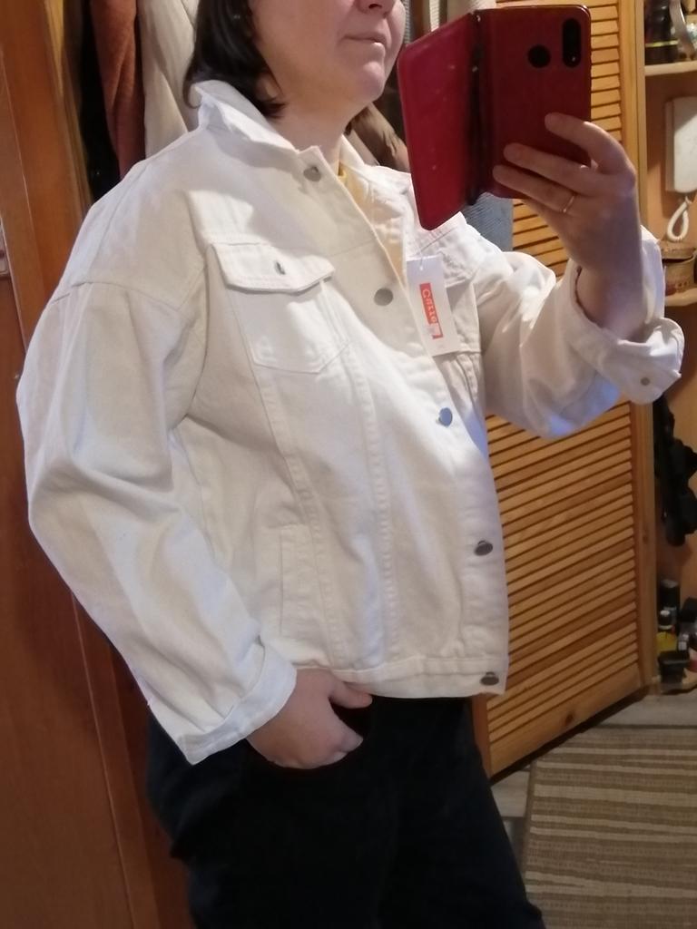 The jacket is good, but it is not white, but a yellowish milky color(((I ordered and was waiting for a white one😔 Sad. I don’t know what to wear with this “dirty” colored jacket.