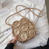 Yogodlns Handmade Summer Beach Women Straw Shoulder Bag Ladies Round Hollow Travel Daily Woven Handbag Holiday Knit Cotton Linen