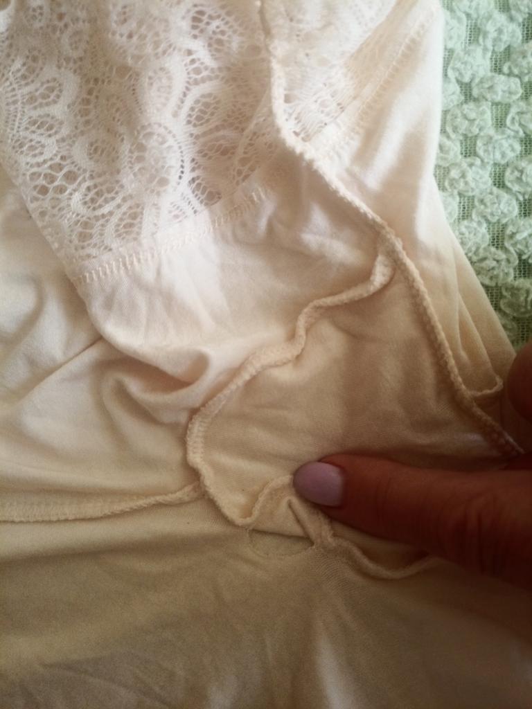 It has a very bad feel, it's plastic, with no label inside about the material composition, and it's dirty inside.