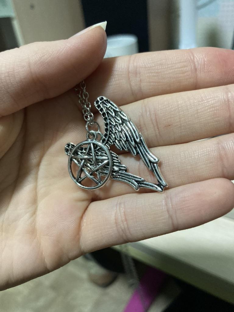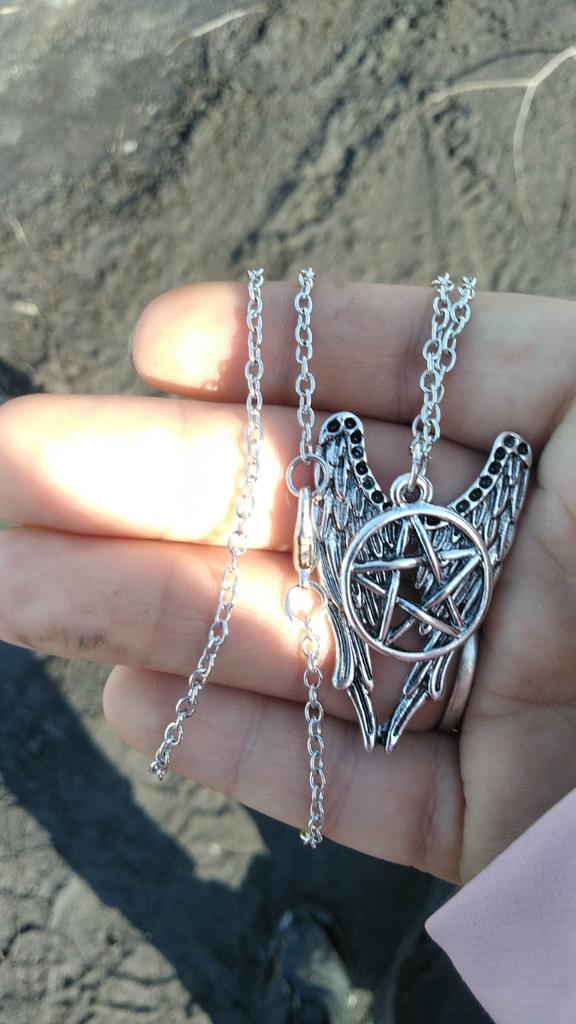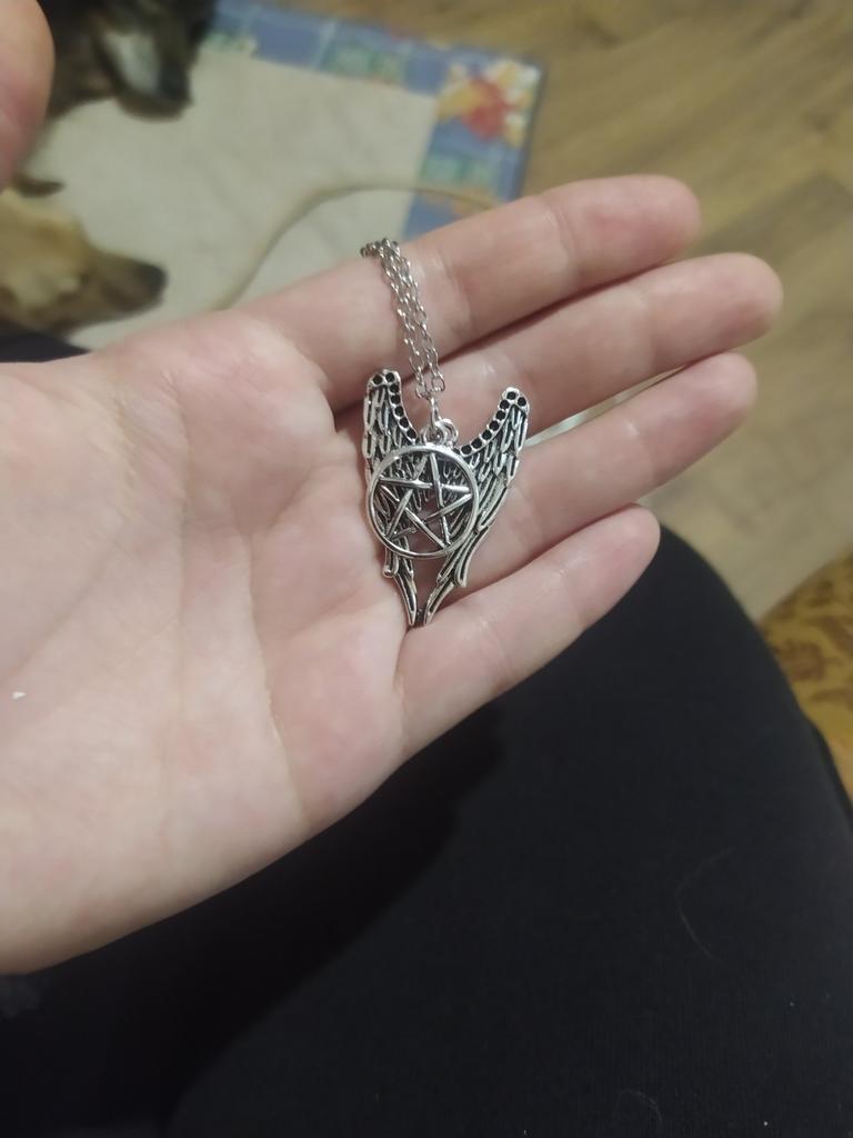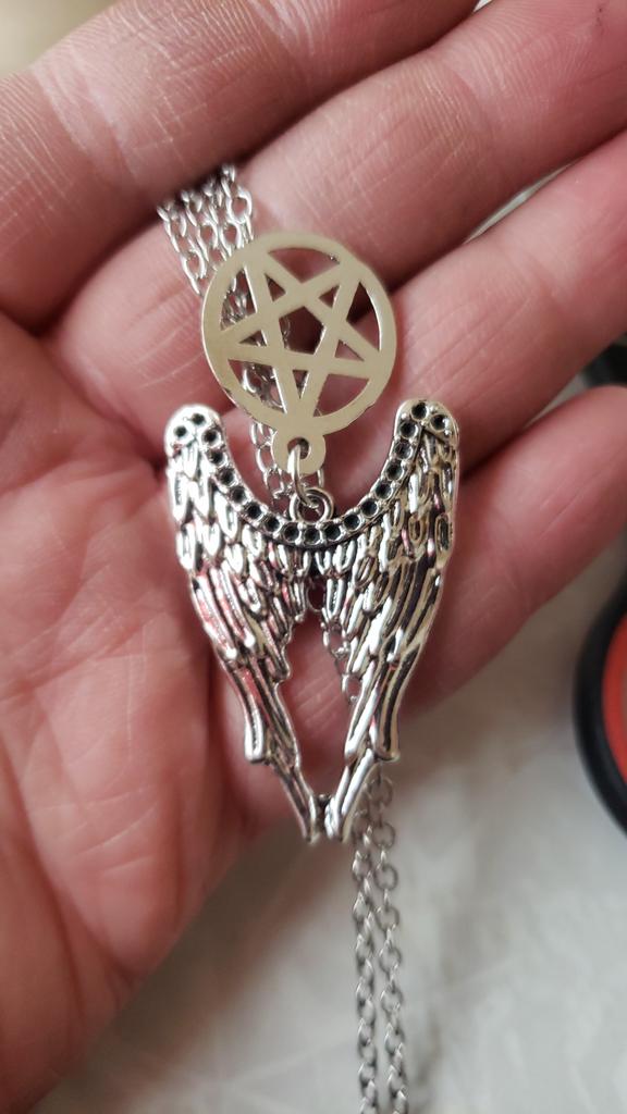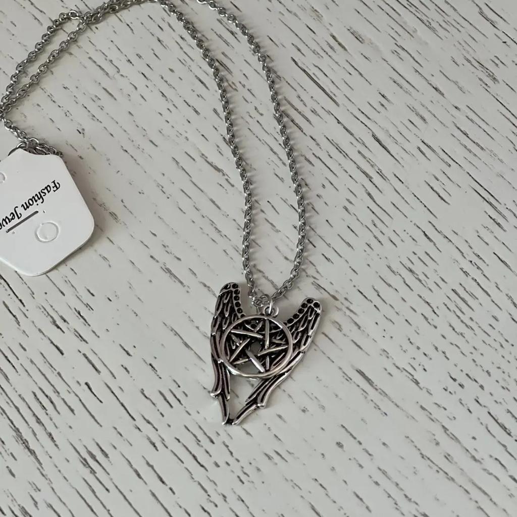 Supernatural Necklace Pentagram Pentacle Castiel Angel Wings Vintage Antique Silver Color Pendant Amulet Jewelry Men
