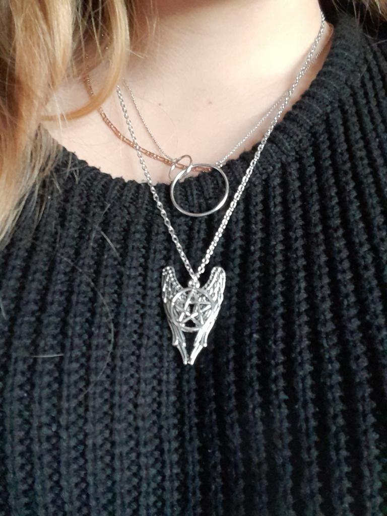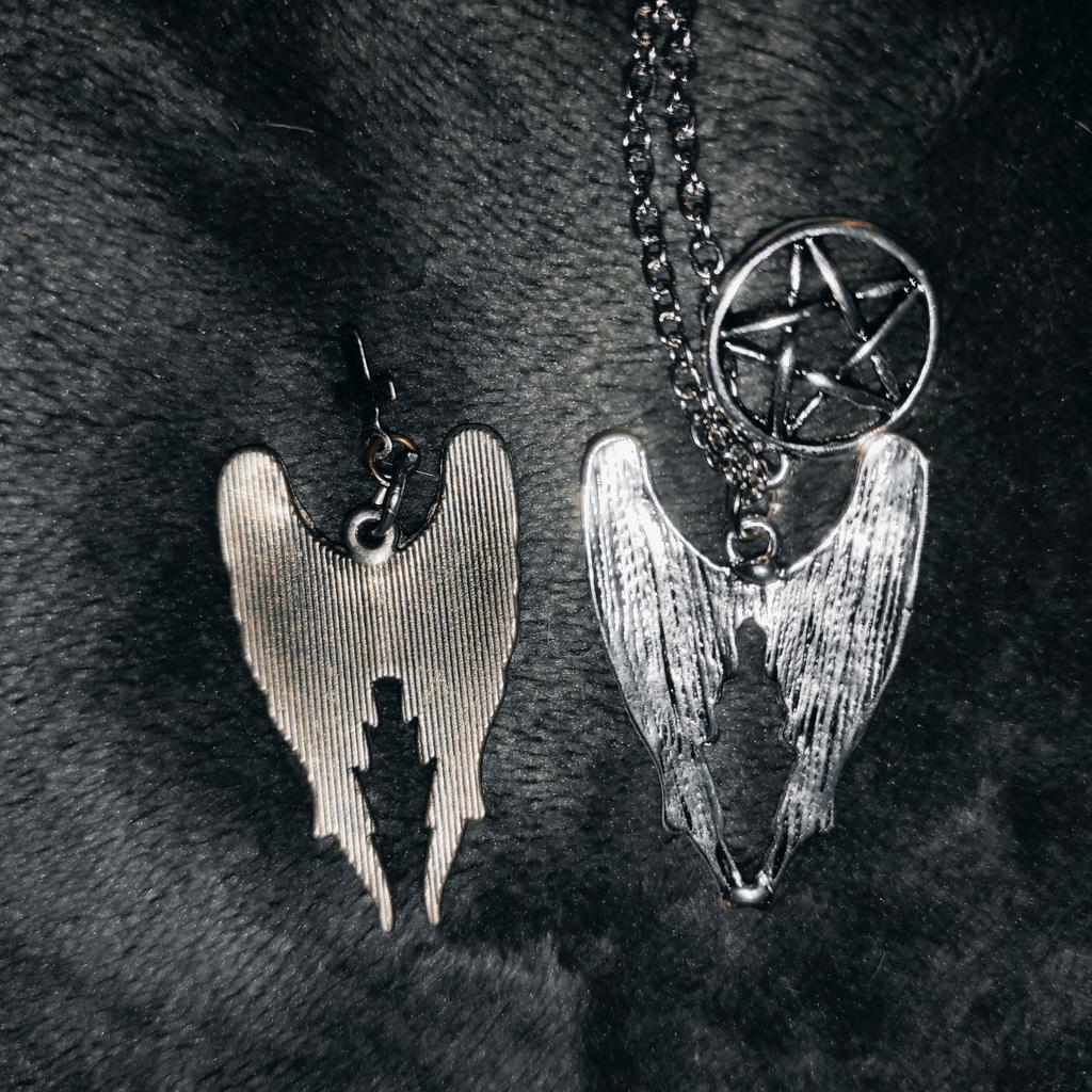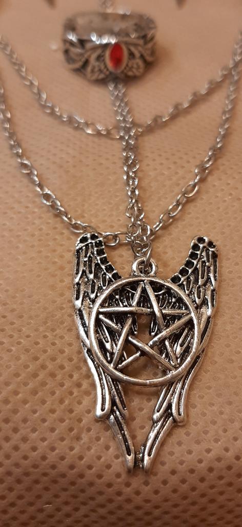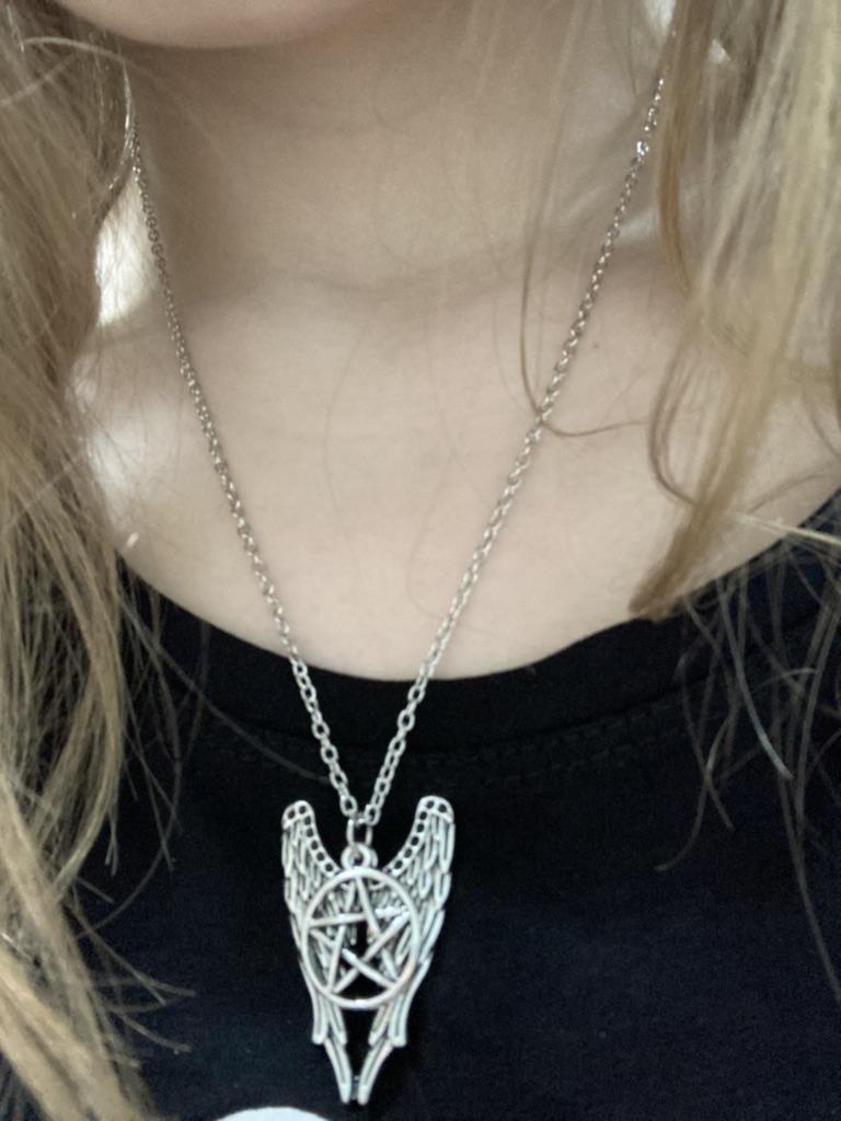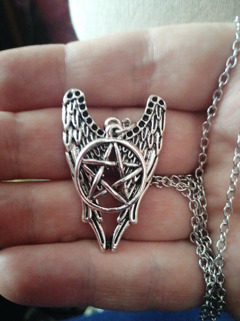 Supernatural Necklace Pentagram Pentacle Castiel Angel Wings Vintage Antique Silver Color Pendant Amulet Jewelry Men