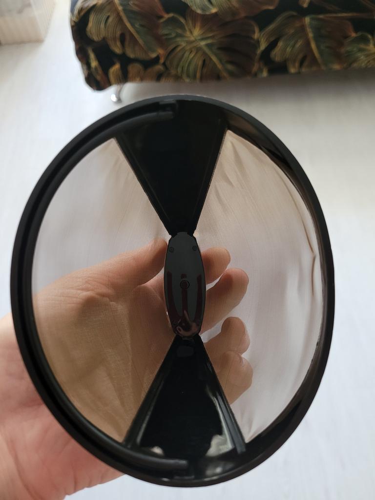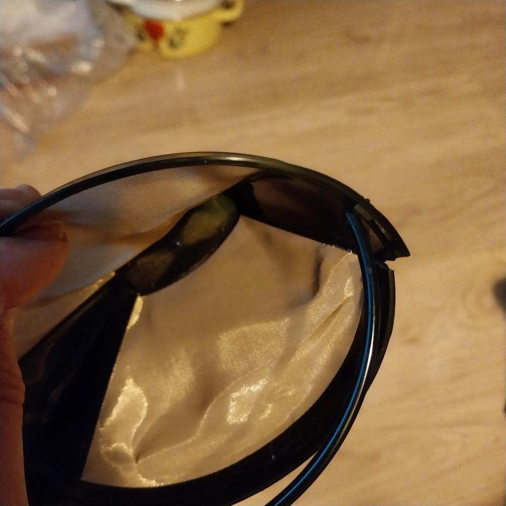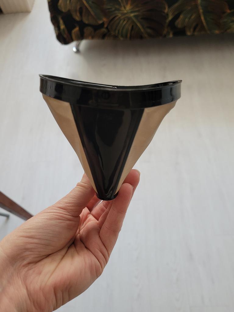 The edge at the top of the coffee filter is broken.