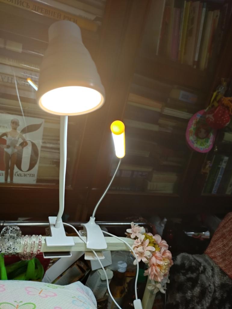 Cool product. "What the doctor ordered"!!! You can choose either bright blue light or soft yellow light. You can also adjust it to be brighter or darker. Flexible leash 38 cm. Everything is very convenient. USB power supply / Clip