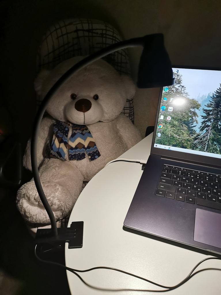 A nice compact lamp, perfect for hanging on top of the monitor and turning it away from you, so it will illuminate the screen and keyboard and not shine in your eyes, its light will be enough for working at the computer in the dark. Equipped with a convenient control panel that is responsible for turning on the lamp itself, the corresponding key is equipped with a separate LED that lights up when the lamp is off, three more keys are responsible for increasing and decreasing the brightness, and choosing one of three types of light (warm, neutral, cold), the wire is thin, the scion-holder is strong, the neck bends well, which allows you to direct the beam in any desired direction.