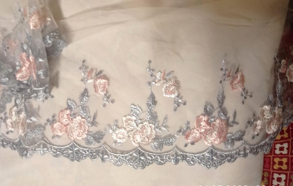 1Y Wide 20CM Grey Flower Lace Fabric Accessories For Handmade DIY Clothing Wedding Dress