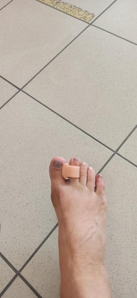In the first days, my finger hurt a lot. It went out of the race, and now they are trying to put it back in place, in general, it was very painful for me to walk for 3 days. After that, everything is fine, the color is flesh-colored, it is not noticeable in sandals. Silicone things do not last forever, after a while the partition becomes thinner, and then it breaks. You definitely go through half a year with it. I recommend it.