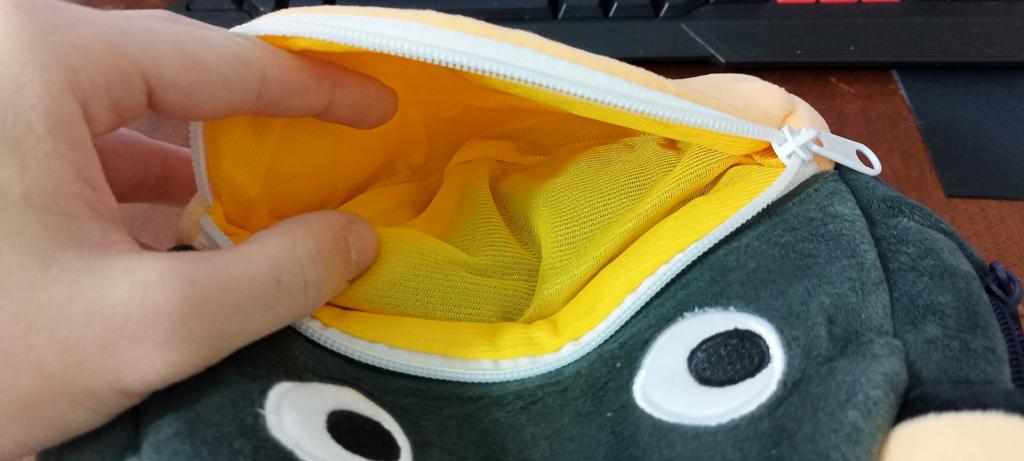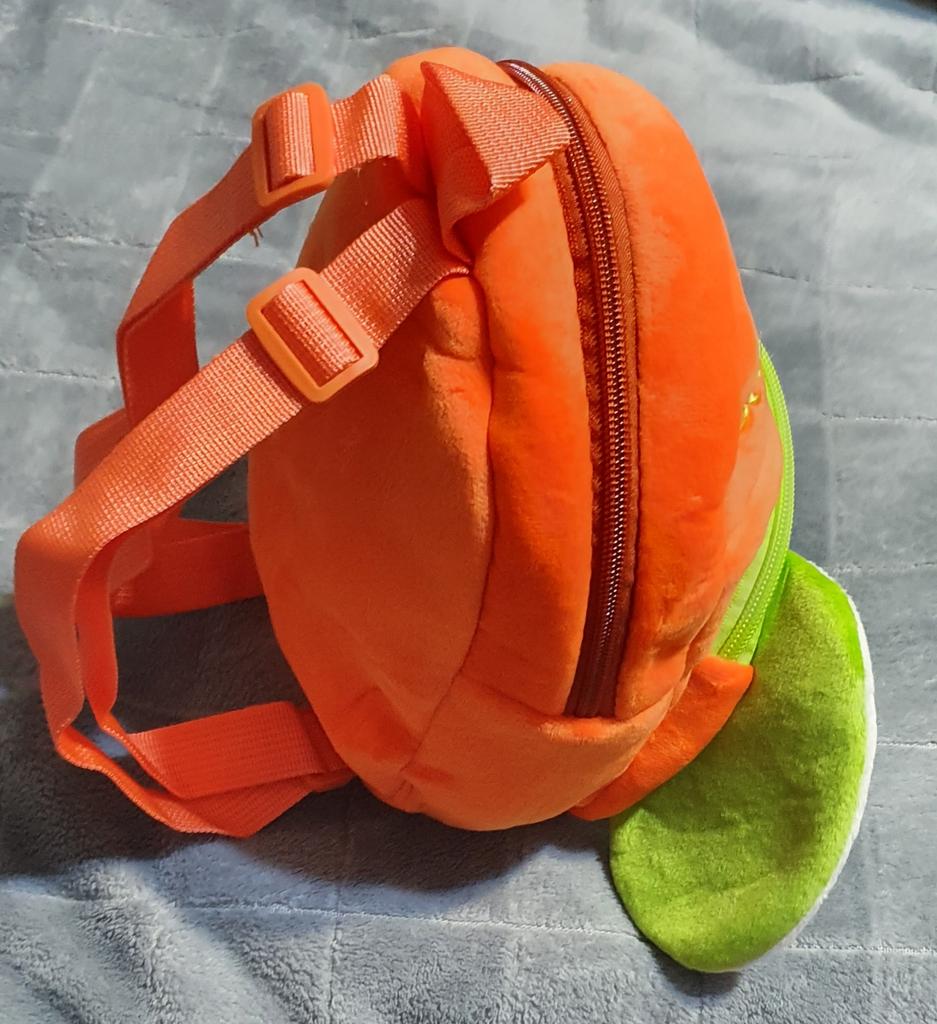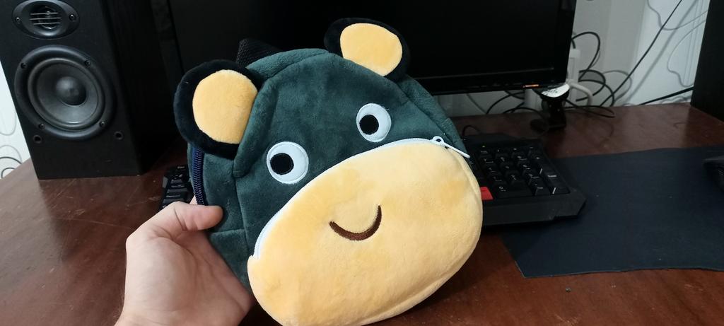 The backpack is cool, we put markers, crayons and many small toys in it. The backpack is roomy, high-quality velvet, soft, in the shape of a frog 🍏 green. 5 points