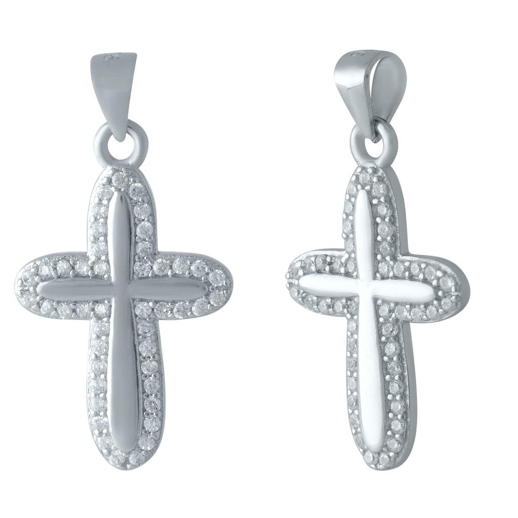 silver cross with cubic zirkonia