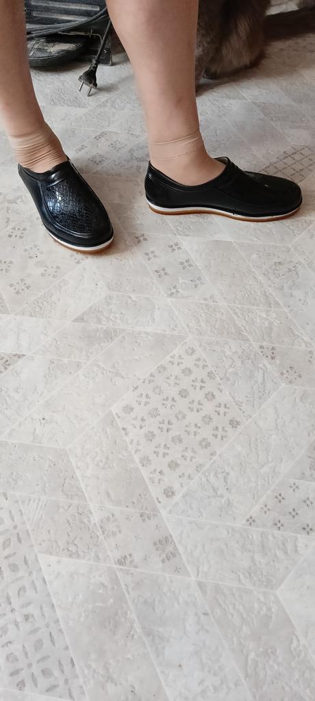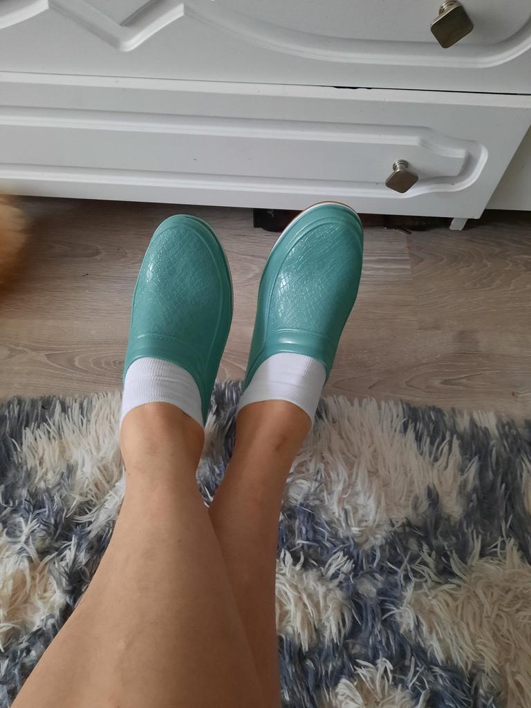 Barefoot, they're a bit tight, size 40. But maybe it will work out, after all, to wear them in the rain while walking the dog. Thank you .