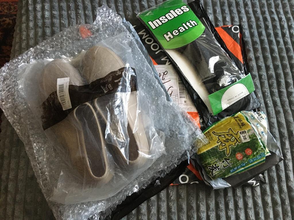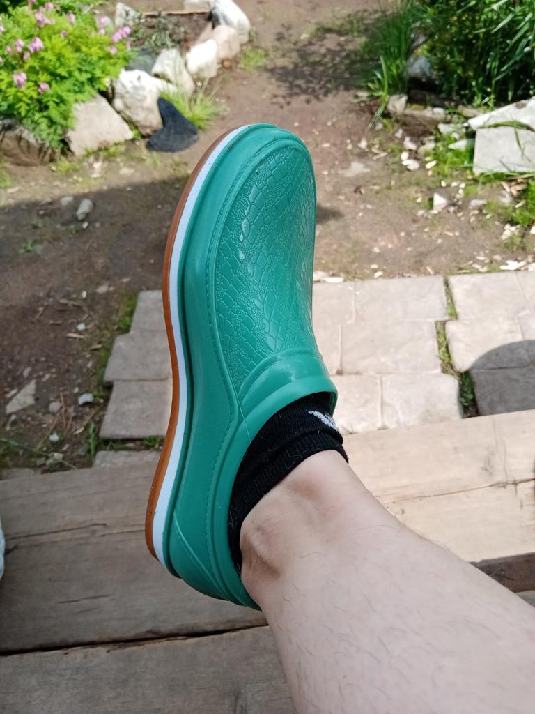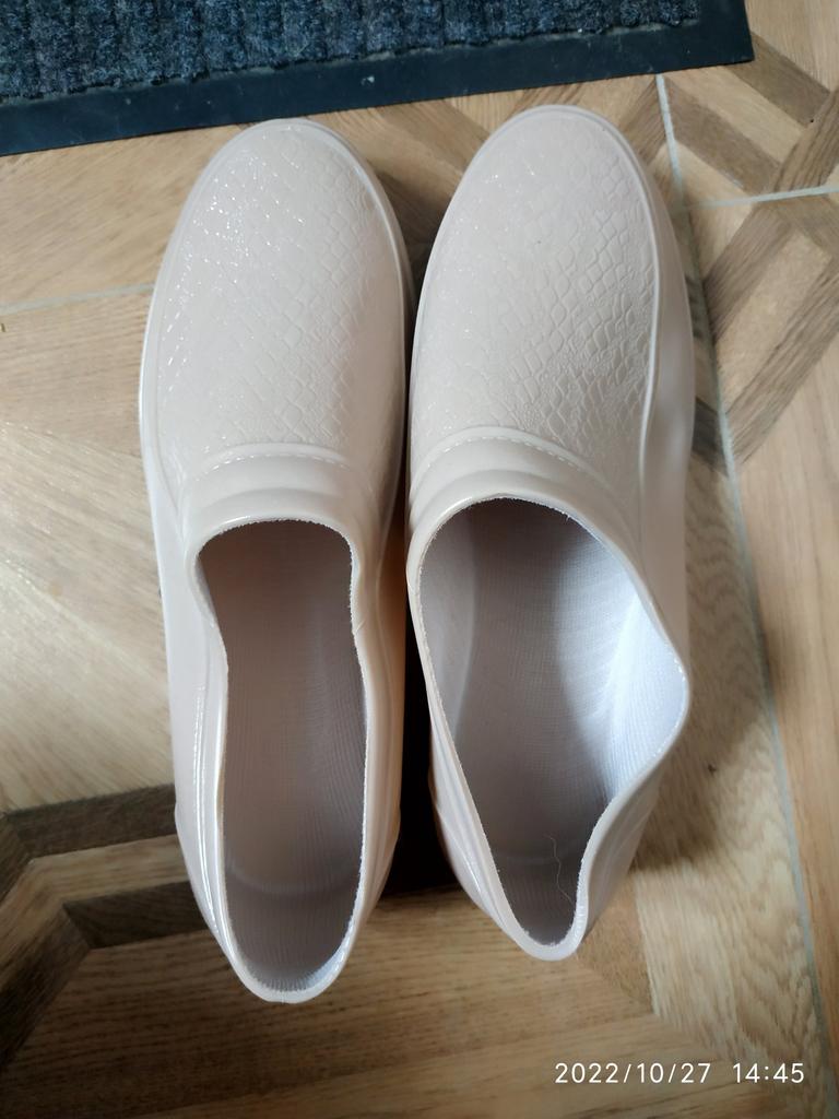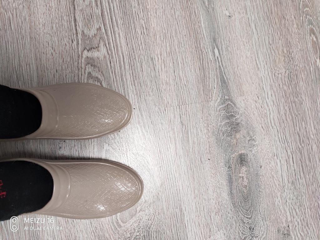 Two goods arrived at the same time. As for the shoes, they correspond to the description, although the smell of rubber is extremely strong, it eventually weathers. Do not get wet. They look stylish on the leg. What you need in rainy weather. Thanks to the seller and Joom. I recommend the product and the store
