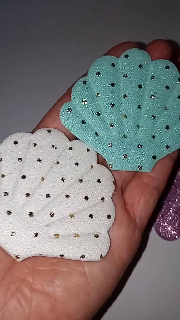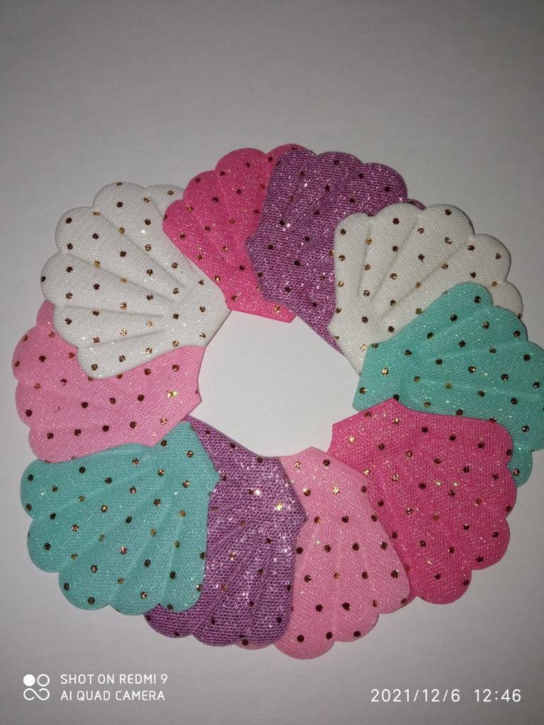 10Pcs 76*58mm Glitter Dot Print Shell Padded Appliques for DIY Cake Topper & Baby Headwear BB Clip Accessories Decor Patches