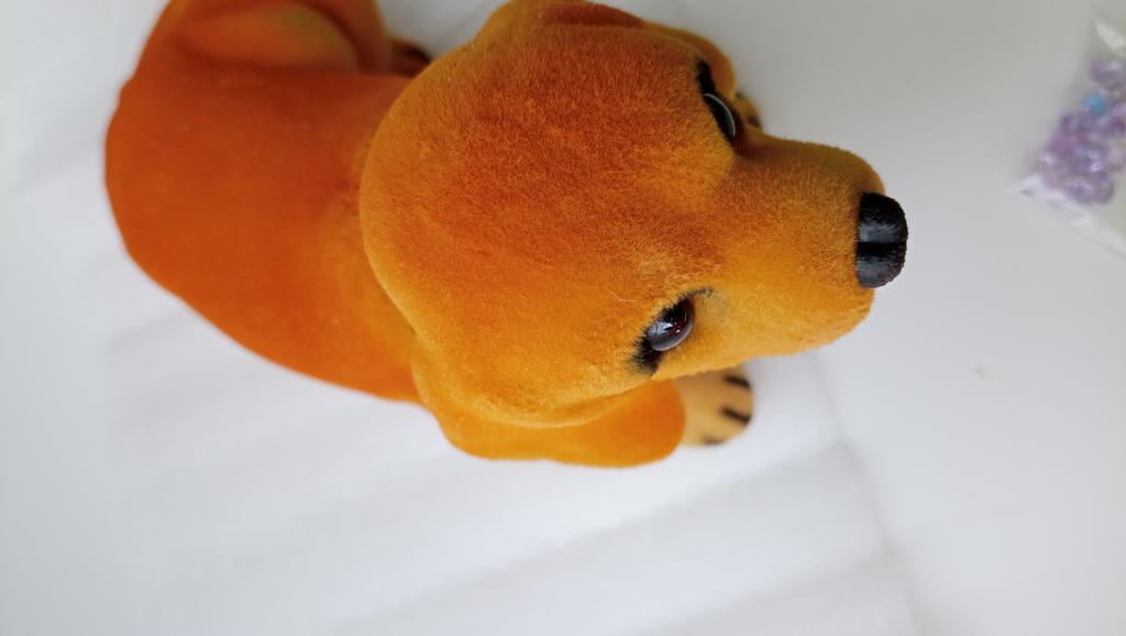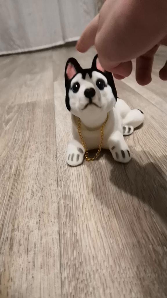 The beagle doll does not move its head like the husky because the tip of the head which is made of lead touches the upper body
