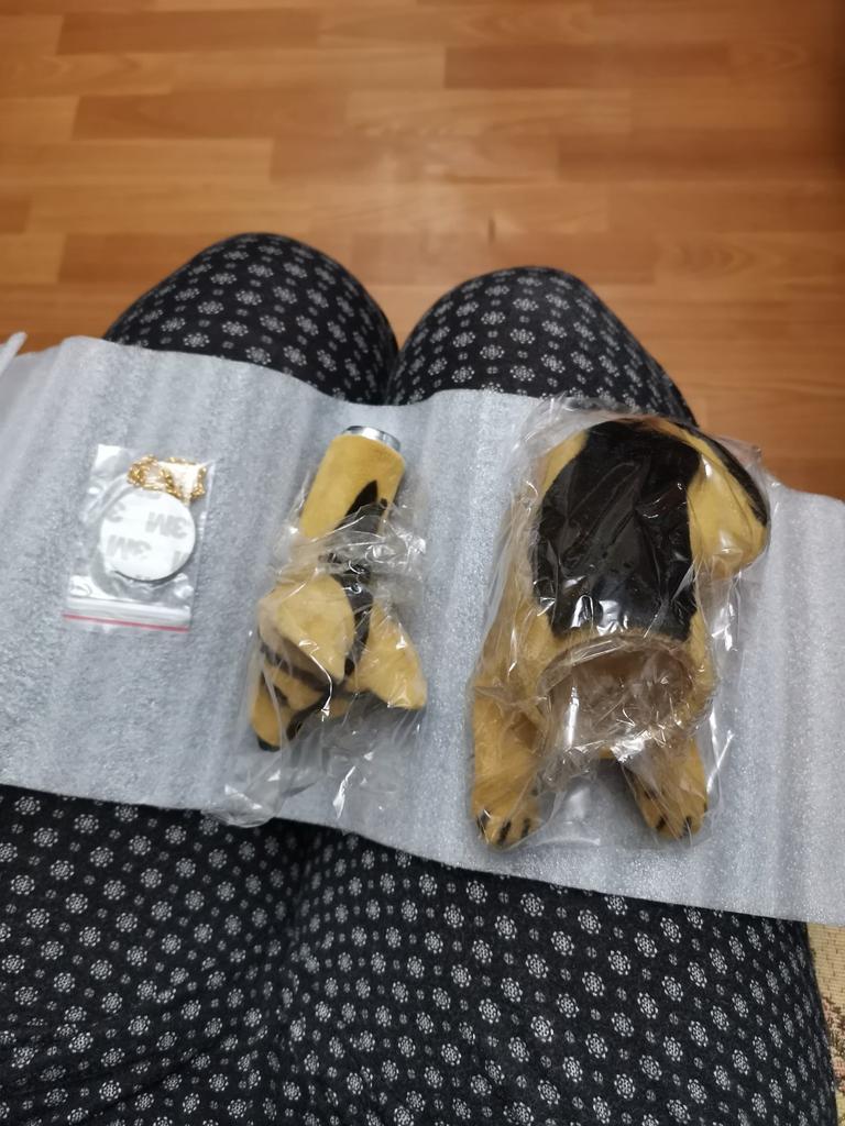 The package arrived, the dog is very cute and pretty! Haven't ridden in the car yet!π This is my childhood dream! . Packed in a box in separate bags. Thanks to the seller and Jum.