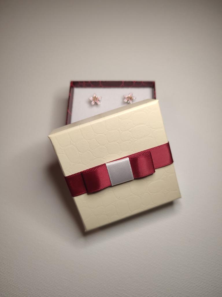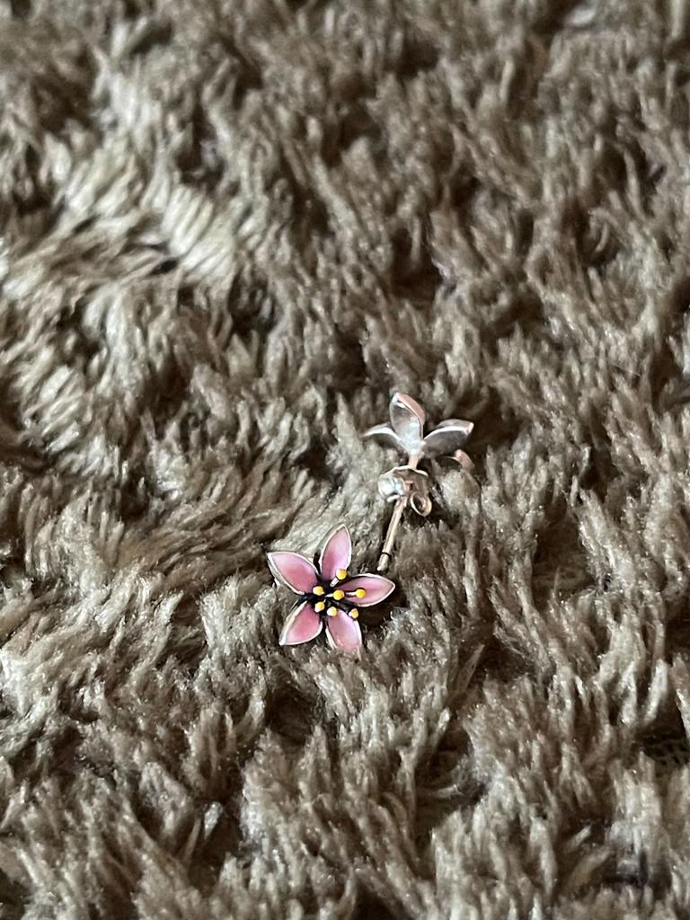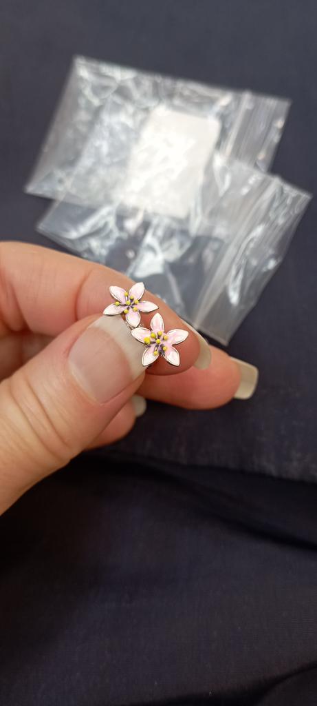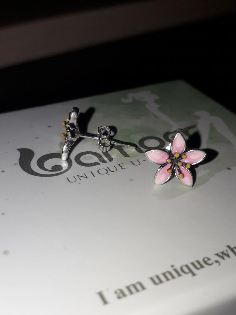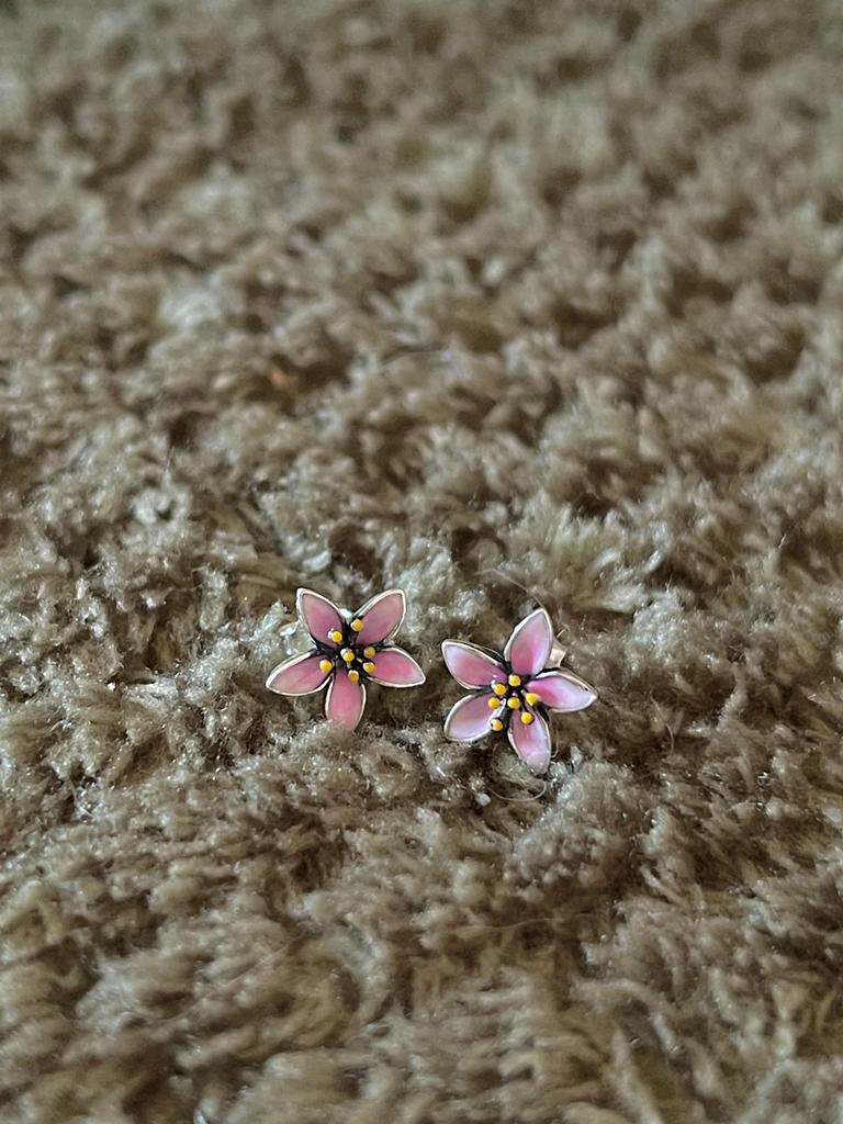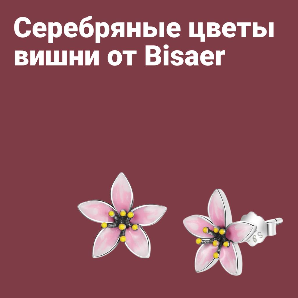 Bisaer 925 Sterling Silver Enamel Pink Realistic Cherry Blossom Stud Earrings for Women Jewelry