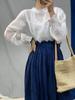Johnature Vintage Thin Ruffles Loose Womens Blouses Summer All Match Sunscreen Button Female Shirts