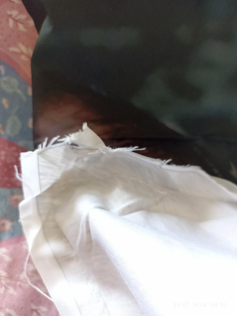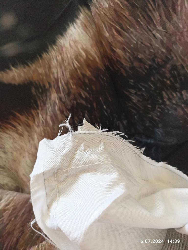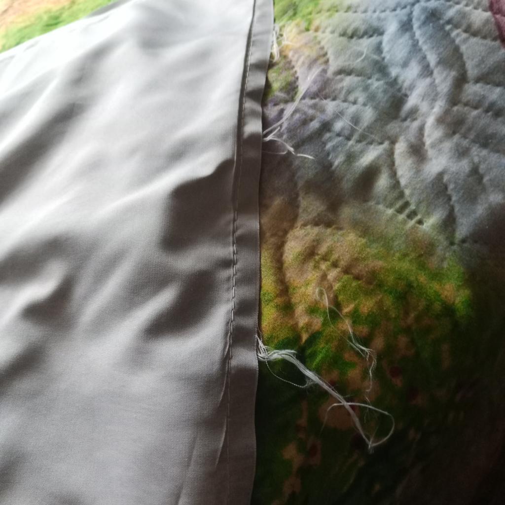 Polyester fabric. The sewing quality is poor - the threads stick out, the seams are uneven.