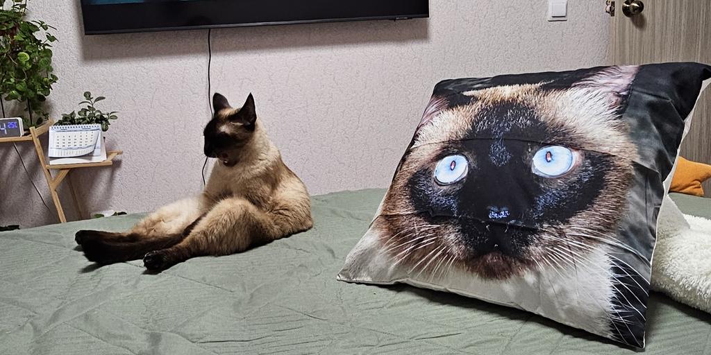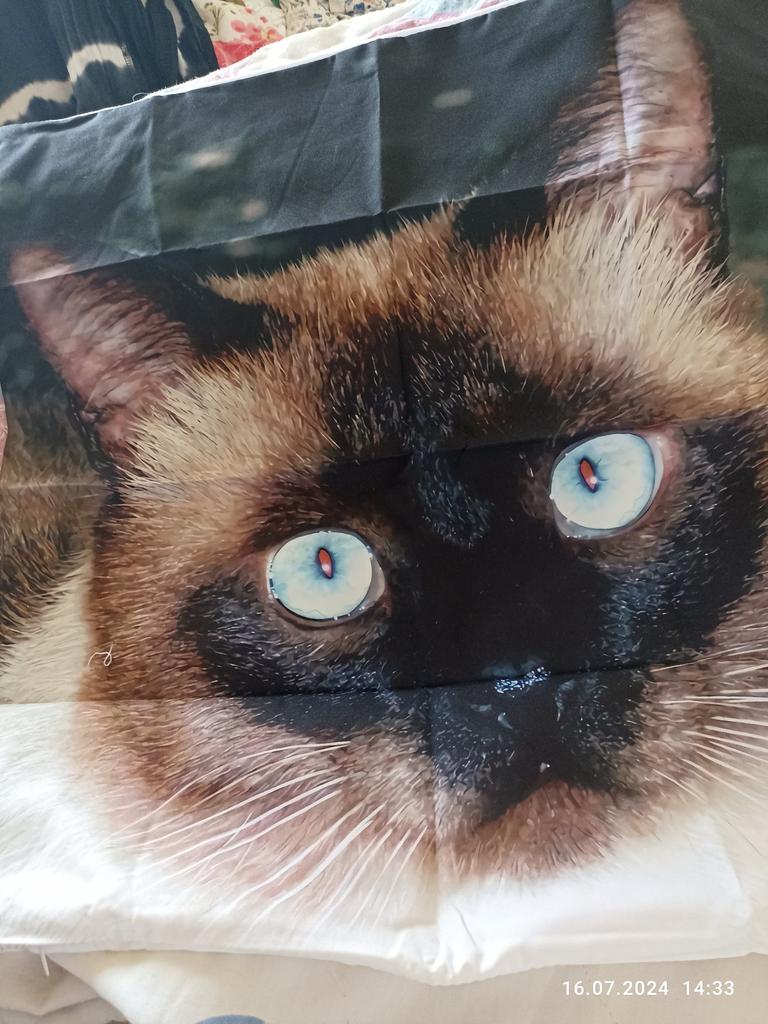 The quality of the fabric is 90℅cotton. The design is bright, but does not correspond to the order. The cat appreciated this with surprise - this is a photo copy of our Marquis. Thank you! I recommend!