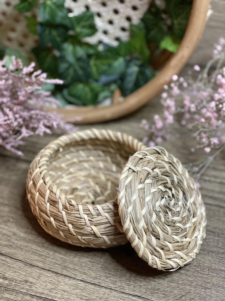 Handmade Straw Woven Storage Baskets With Lid Rattan Seagrass Desktop Kitchen Sundries Organizer Tools Home Storage Supplies